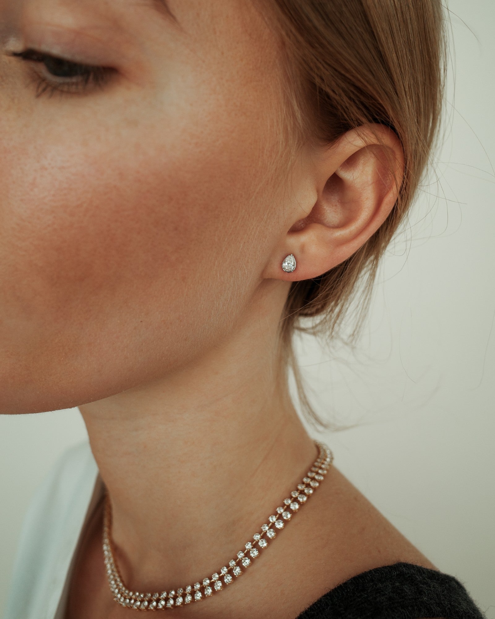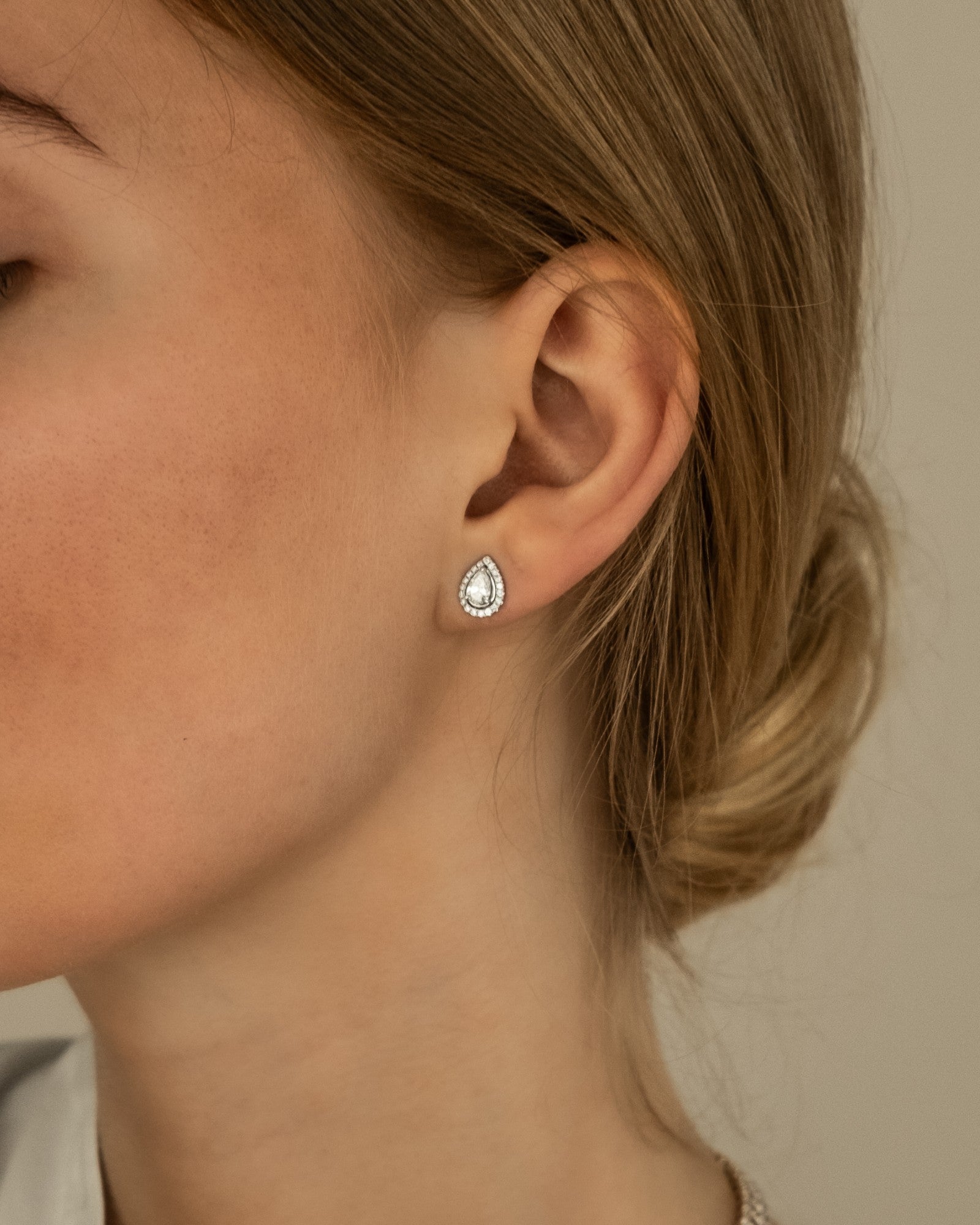 Two looks, one piece. These Pear cut studs float effortlessly on the ear for easy, everyday wear, but add the removable halo jacket and they instantly elevate. Smart, stylish, and travel-friendly, it’s the kind of piece you’ll reach for constantly, whether keeping it simple or going all in.