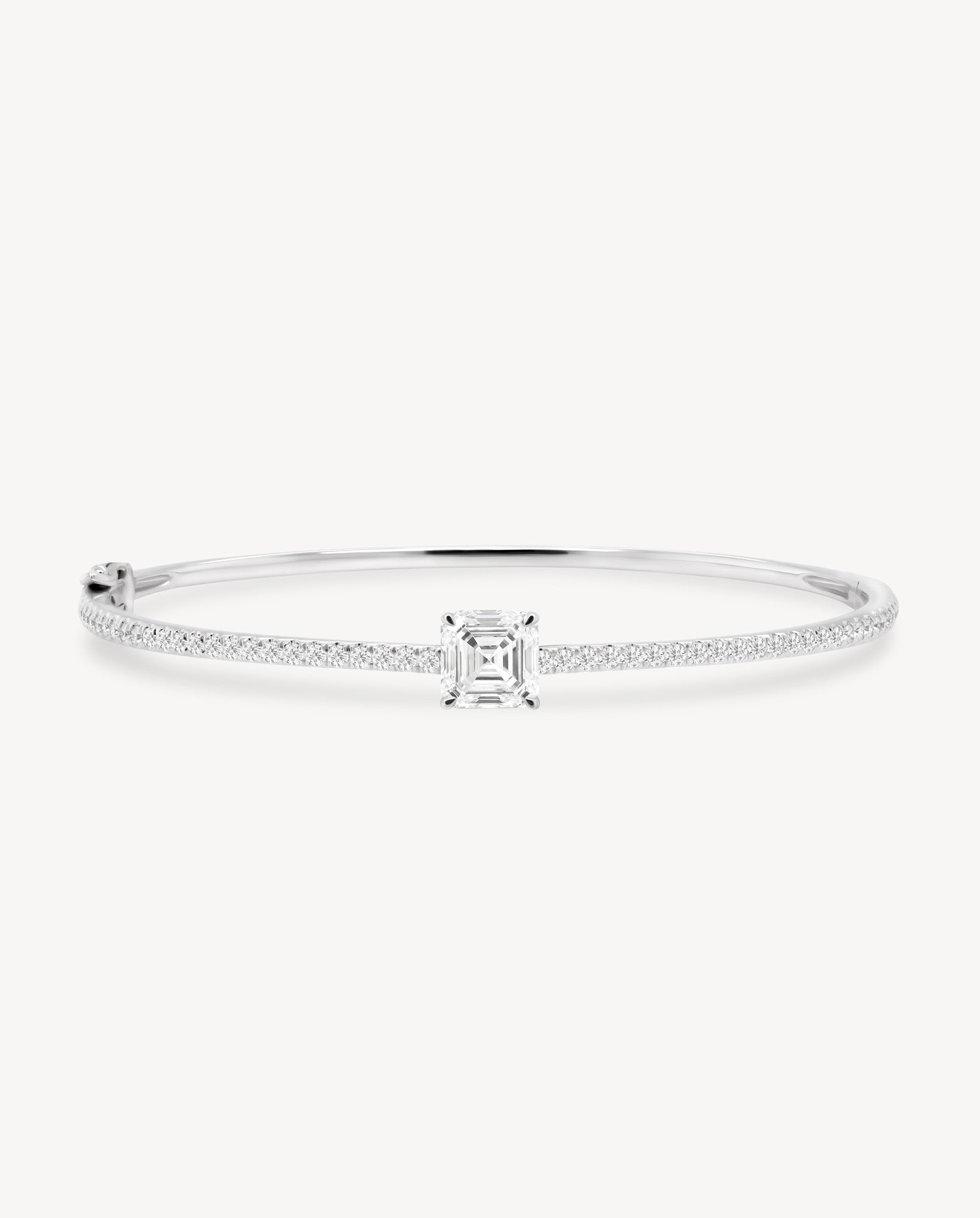 Asscher Cut Diamond Pavé Solitaire Bangle