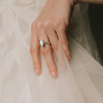 A classic solitaire with a sharp twist. This ring features a Pear cut diamond set on a knife edge band, drawing the eye to the stone’s striking shape and brilliant facets. The clean profile enhances the diamond’s presence, making it a timeless choice with a modern edge.