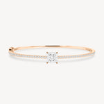 A diamond bangle where the center stone takes the spotlight, framed by a line of diamonds that wraps the wrist in brilliance. Designed as a sleek alternative to traditional bracelets, it stays balanced so the spotlight never shifts. Choose your diamond size and gold color to create a piece that feels personal, versatile, and strikingly simple.