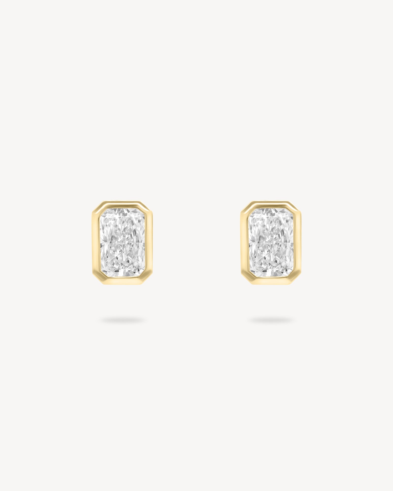 Radiant cut studs bezel-set for those who appreciate the warm glow of gold.