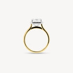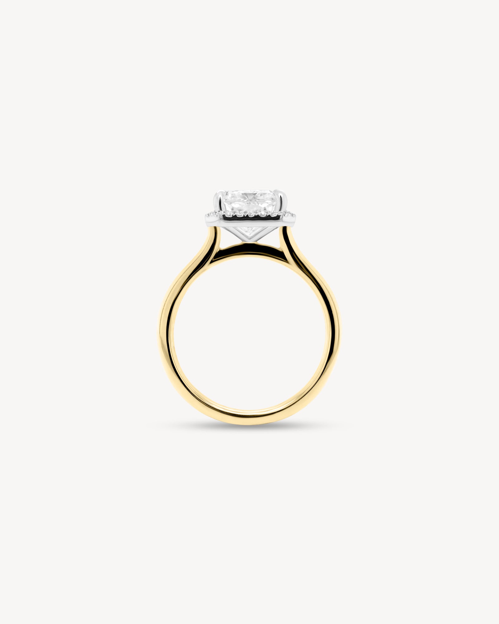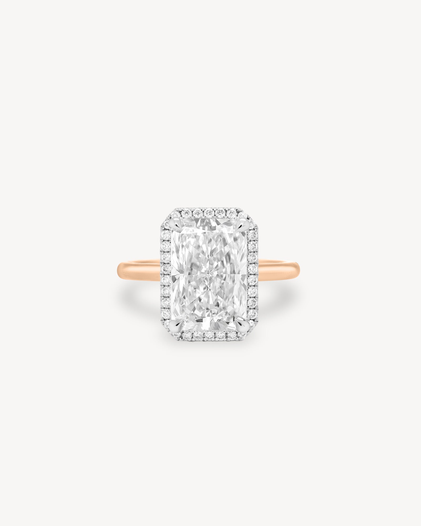 Radiant Cut Diamond Halo Two-Tone Ring in Cathedral Setting