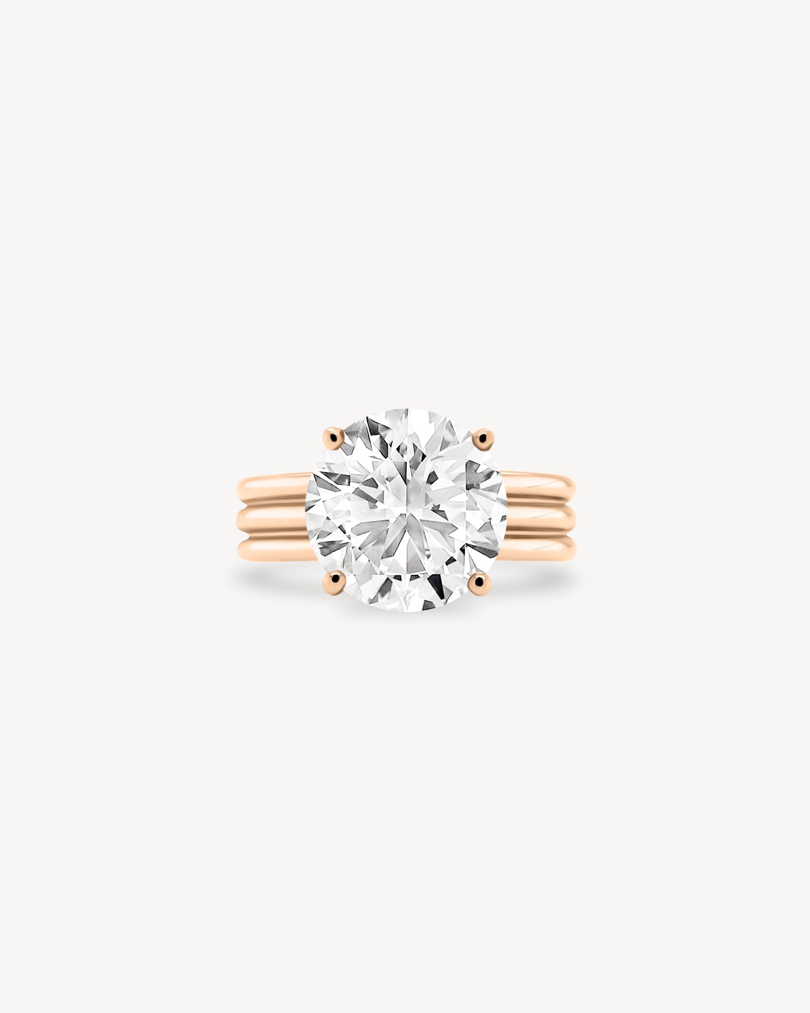 Bold, balanced, and built to fit you. This ribbed band brings a modern edge to the classic Round cut solitaire, with clean grooves that add subtle dimension and structure. Designed to scale proportionally with your chosen stone size, the band width adjusts to maintain its sleek silhouette, whether you go minimal or max out the carat weight. A standout setting that moves with your style.