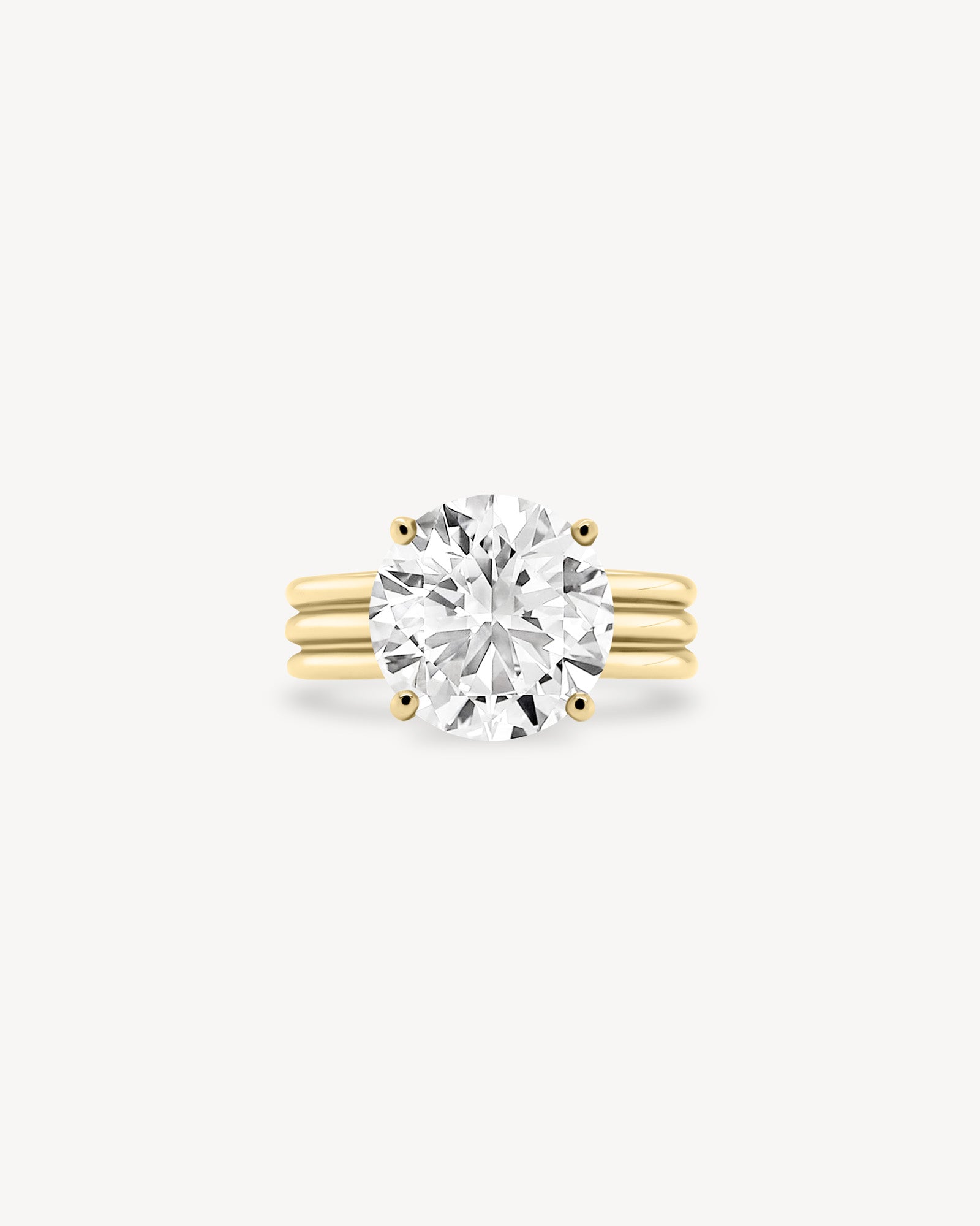 Round Cut Diamond Triple-Ribbed Solitaire Ring