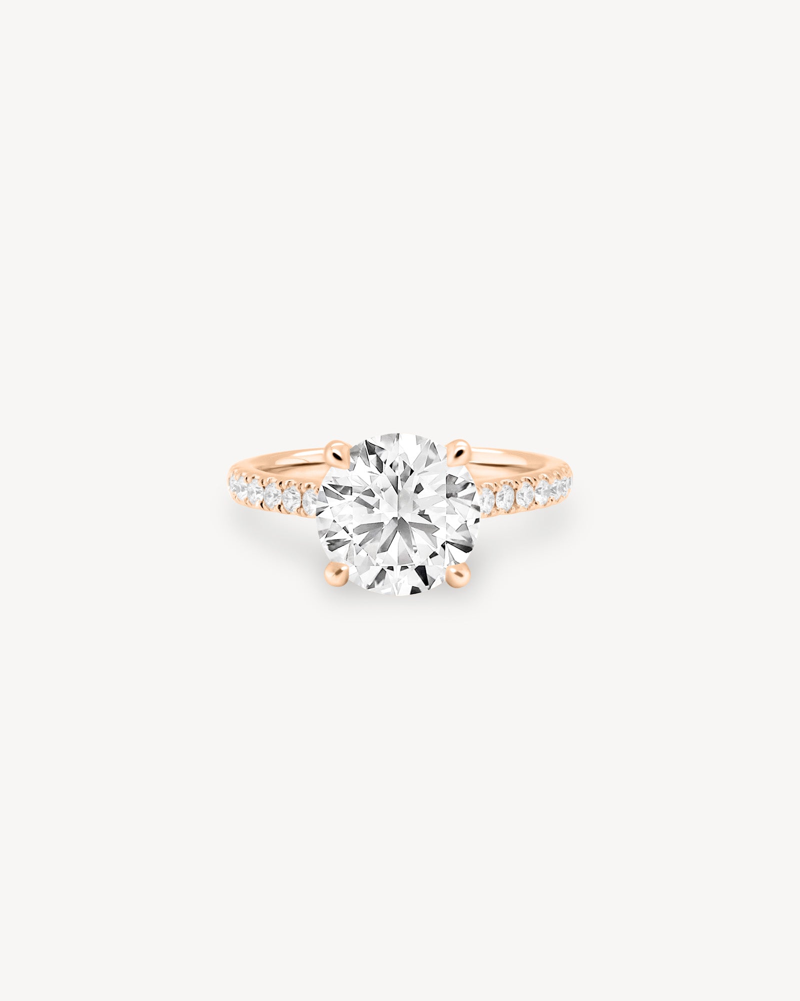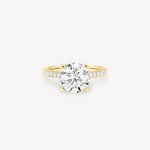 Round Cut Diamond Pavé Ring in Cathedral Setting with Hidden Halo