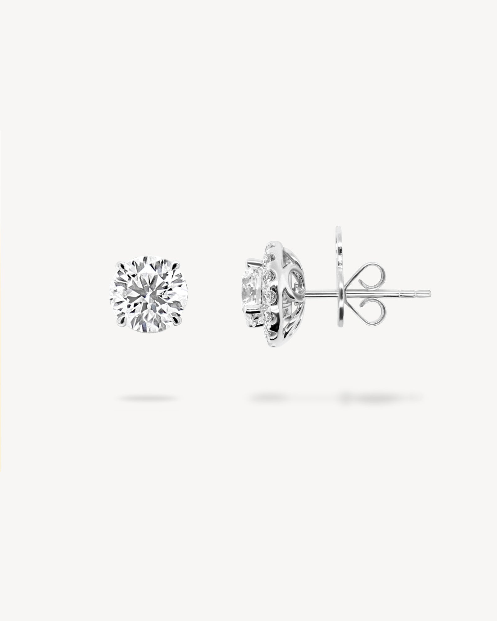 Model 2 is shown wearing 4ctw (2ct each) studs