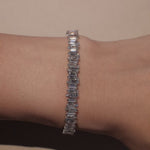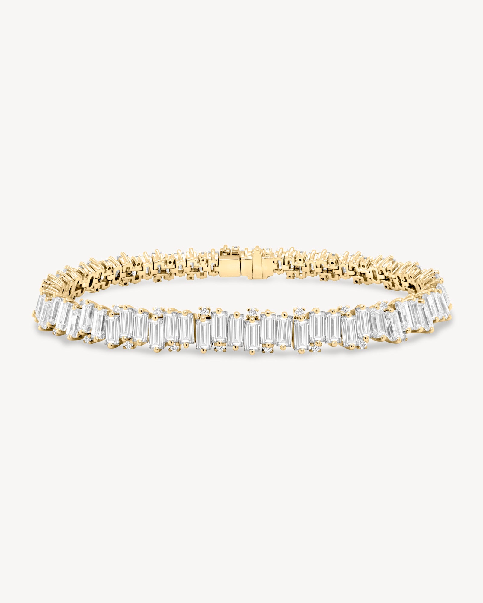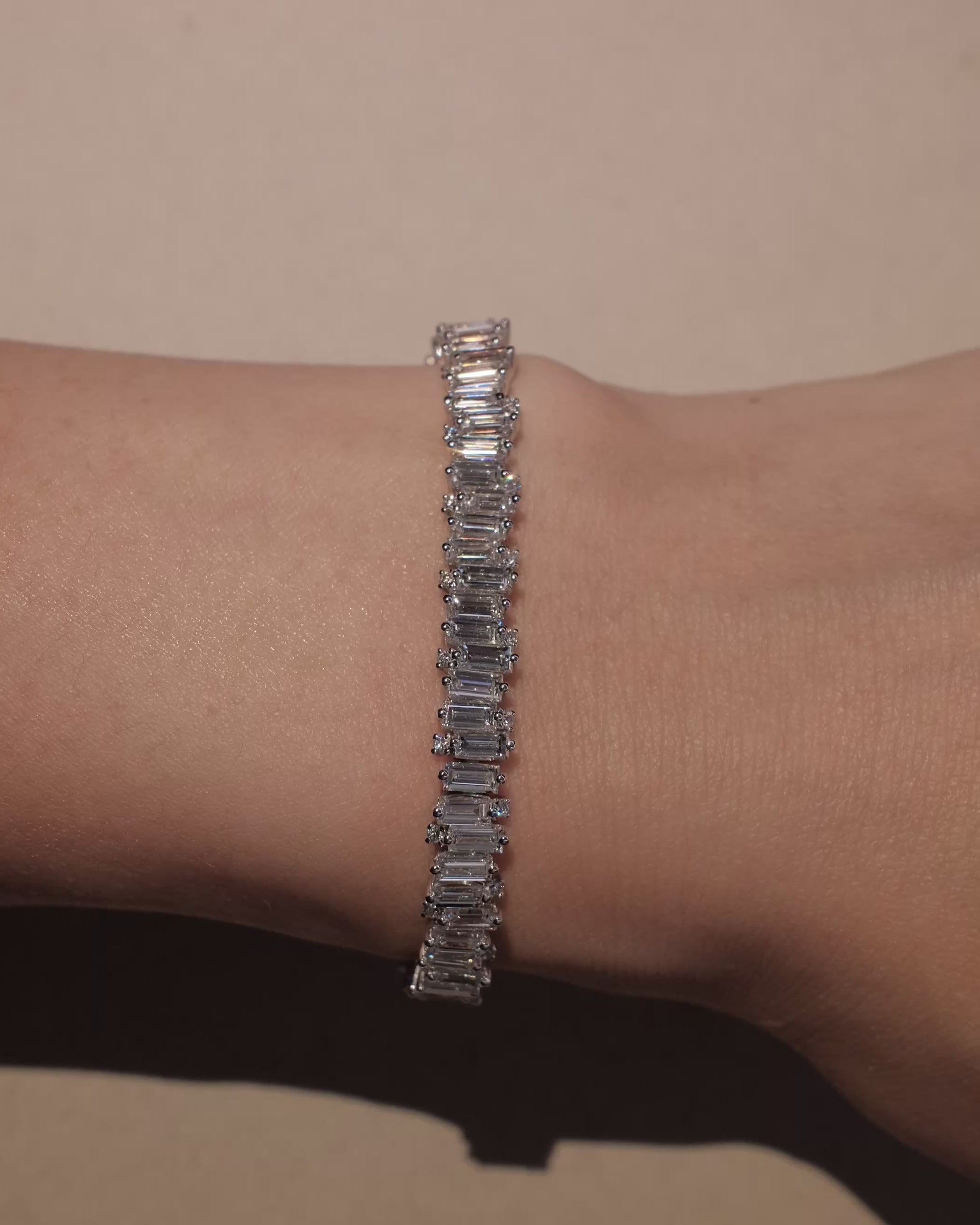 Structured but unexpected. This staggered diamond bracelet plays with proportion and placement for a look that’s equal parts effortless and striking. With contrasting cuts and a floating effect along the wrist, it brings a fresh edge to classic sparkle. Pair it with the matching ring for a complete, standout set.