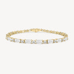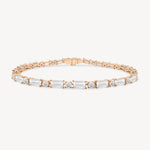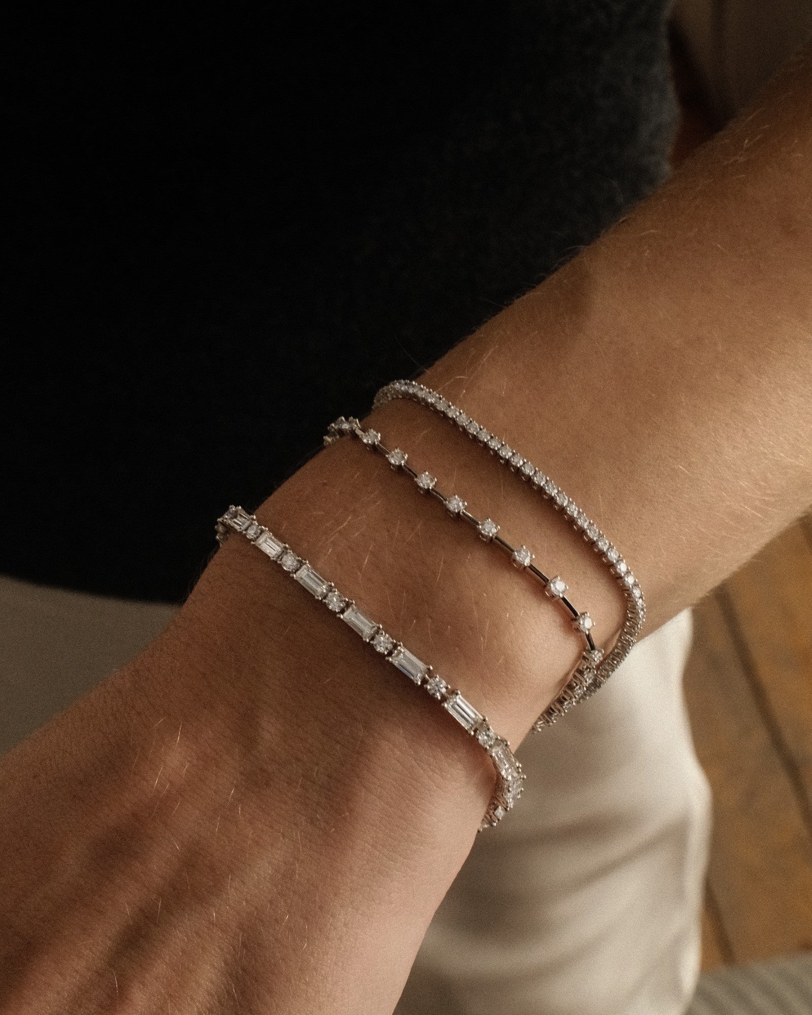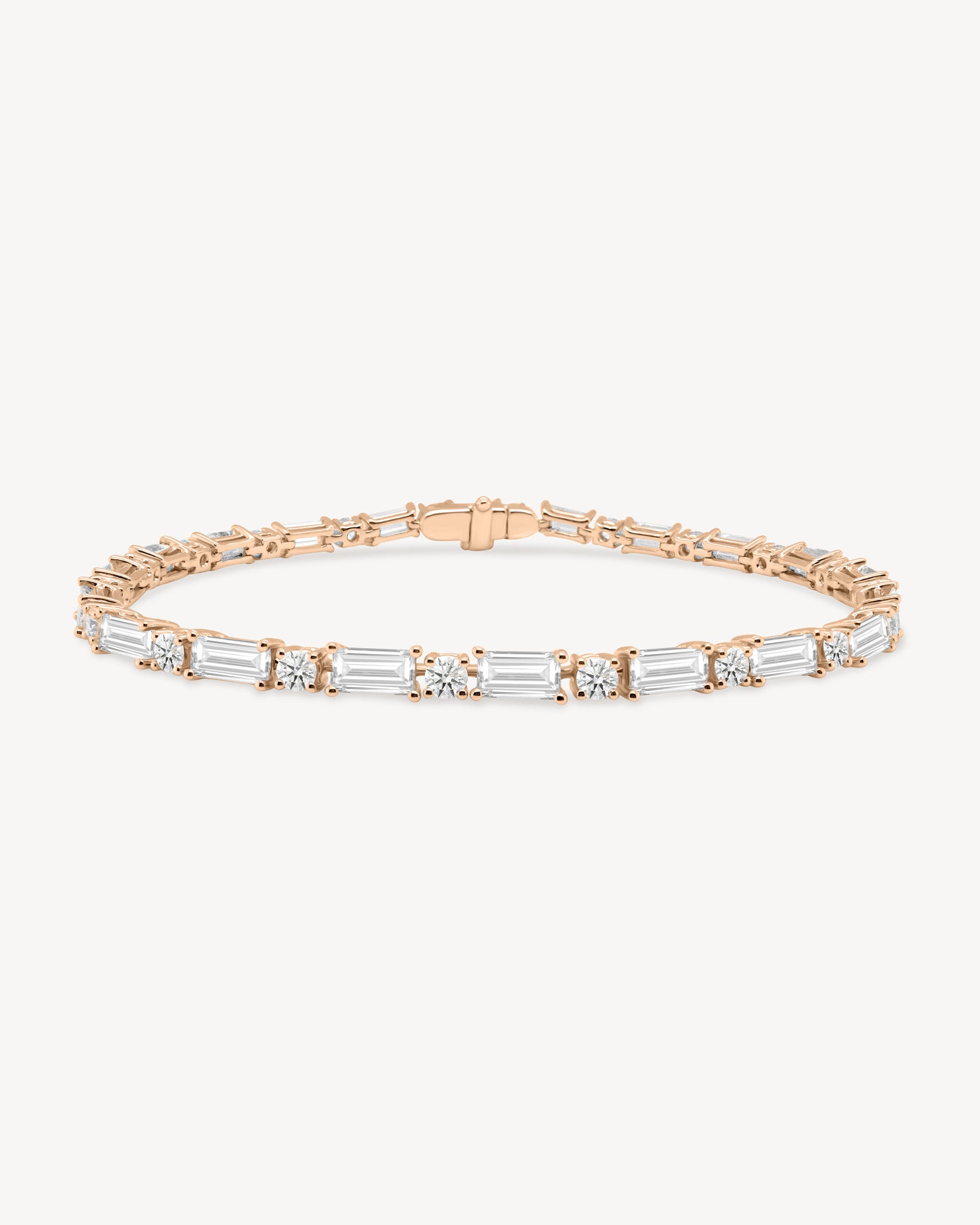 An elegant balance of contrast. Horizontal Baguette and Round cut diamonds alternate in a steady rhythm, blending clean lines with brilliant sparkles. It’s timeless with a twist, and endlessly wearable.