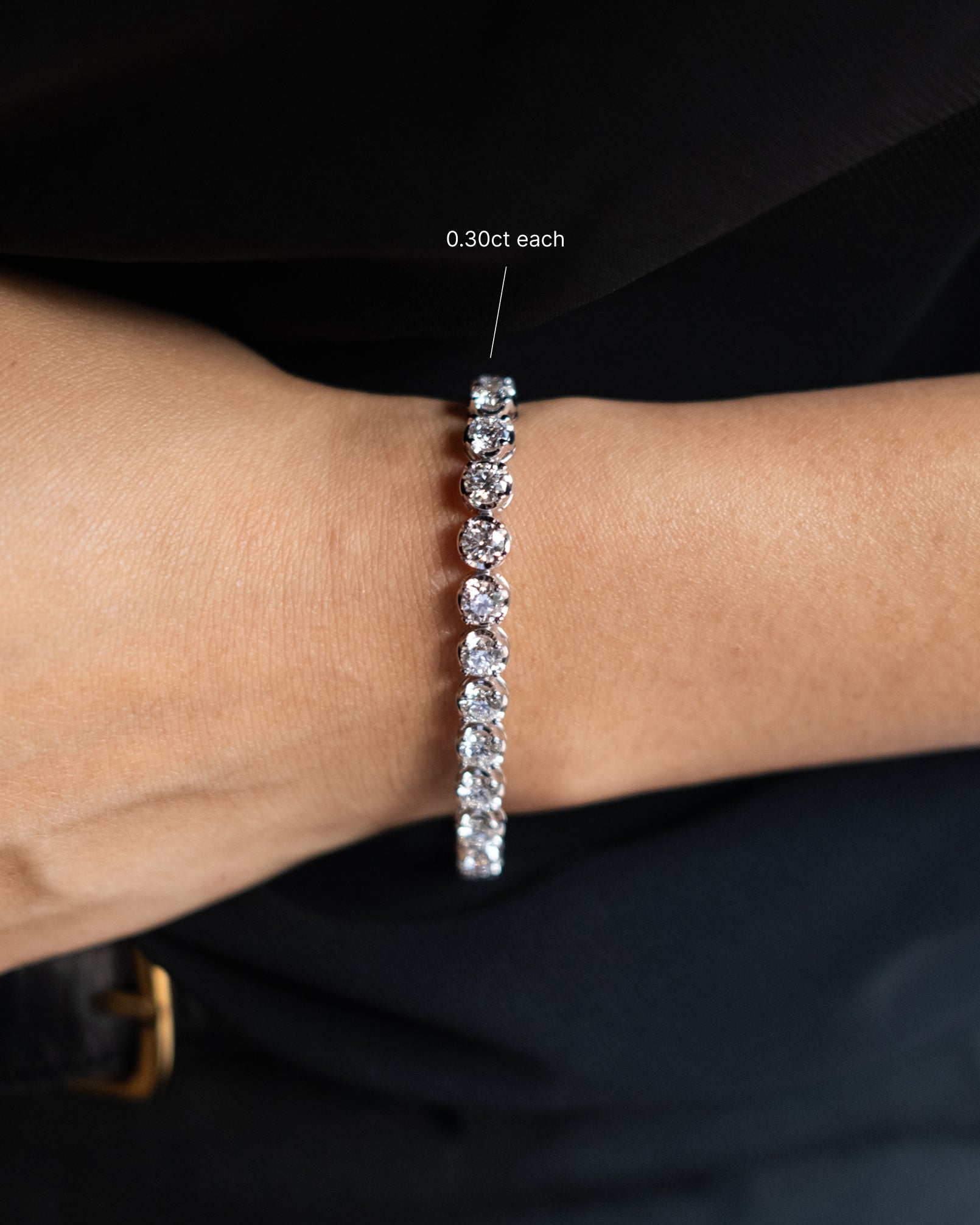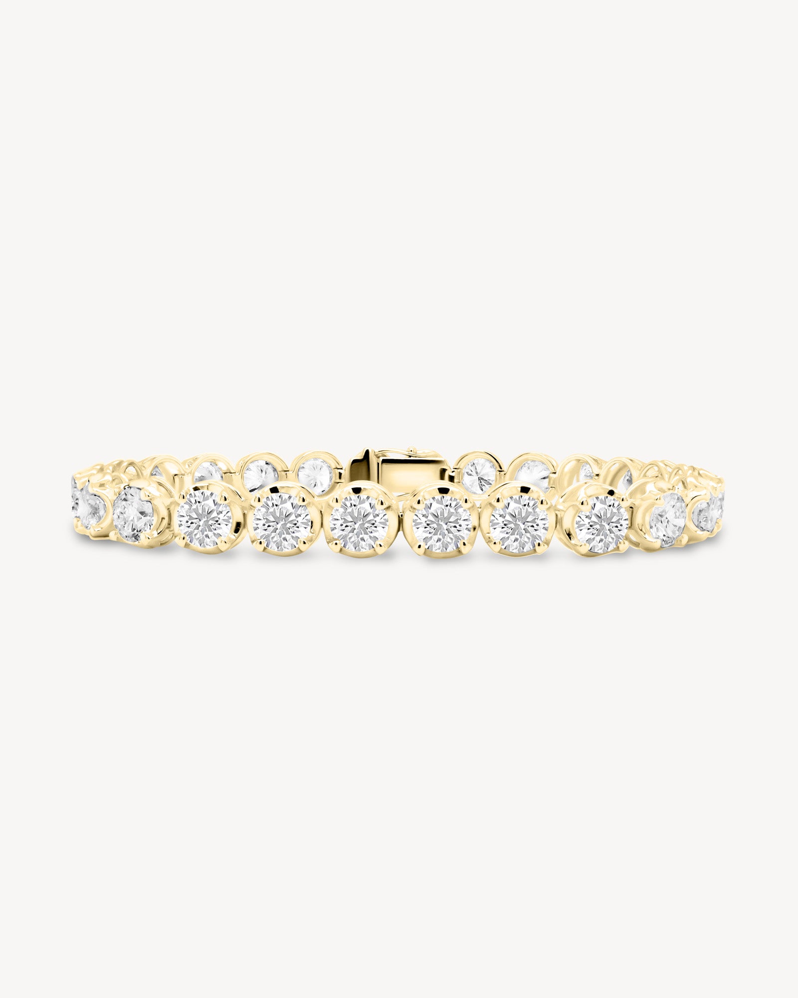 A refined take on a beloved classic. Each diamond is cradled in a deep, contoured setting that curves smoothly around the stone, enhancing its shape and giving the bracelet its signature round silhouette. Crafted with generous gold and perfected over years of iteration, this piece is as comfortable as it is luxurious.
