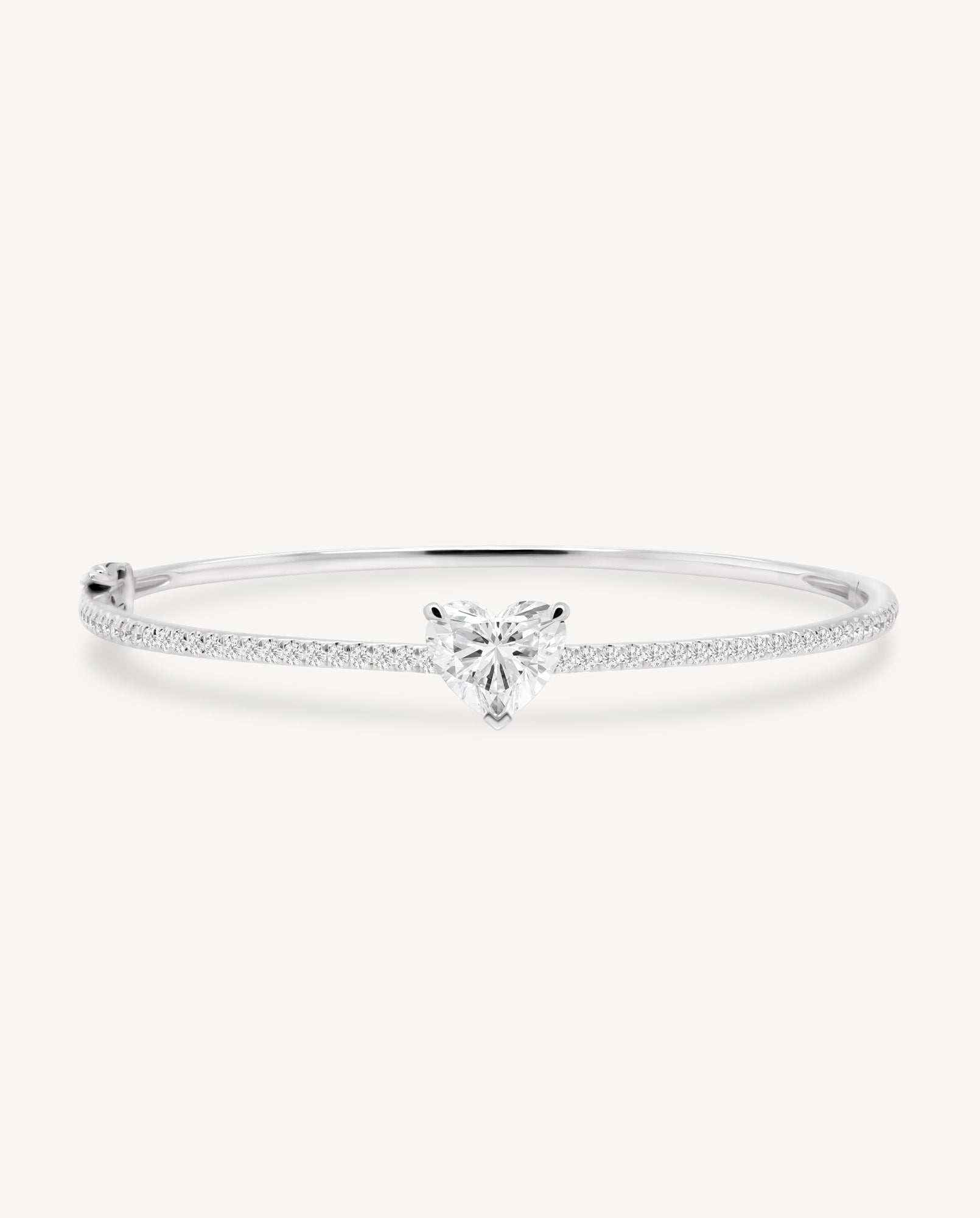 Heart Shaped Diamond Pavé Solitaire Bangle
