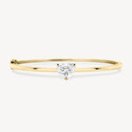 A solitaire bangle where the diamond takes center stage, floating effortlessly on the wrist. Designed as a sleek alternative to traditional bracelets, it stays balanced so the spotlight never shifts. Choose your diamond size and gold color to create a piece that feels personal, versatile, and strikingly simple.