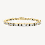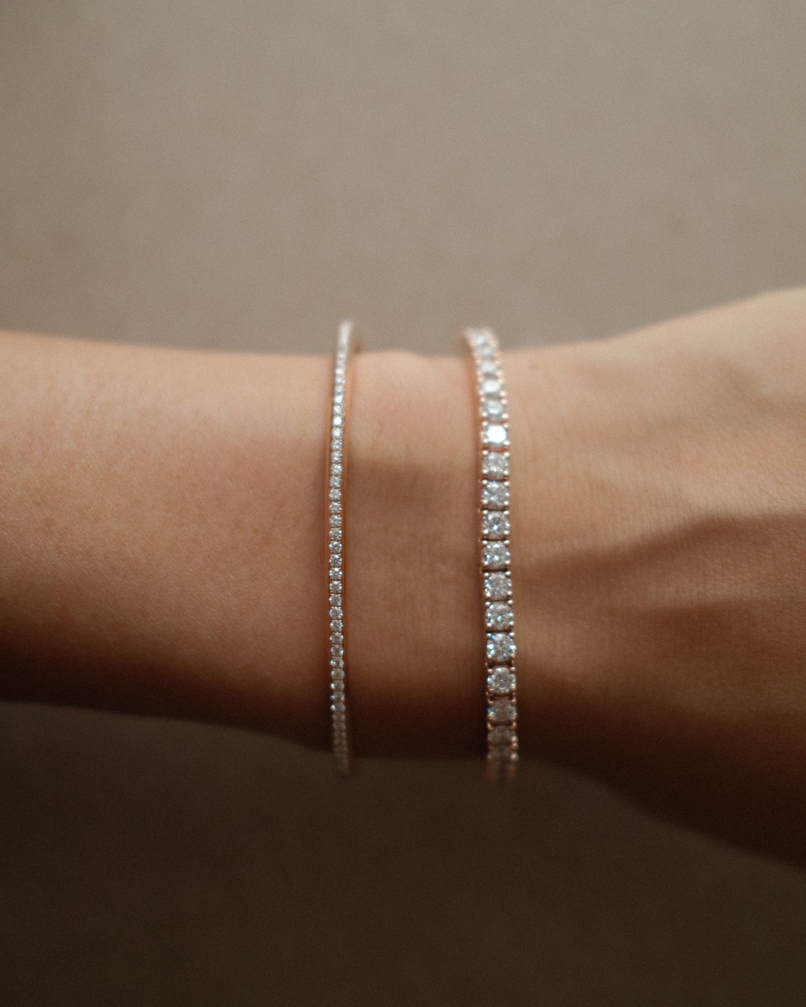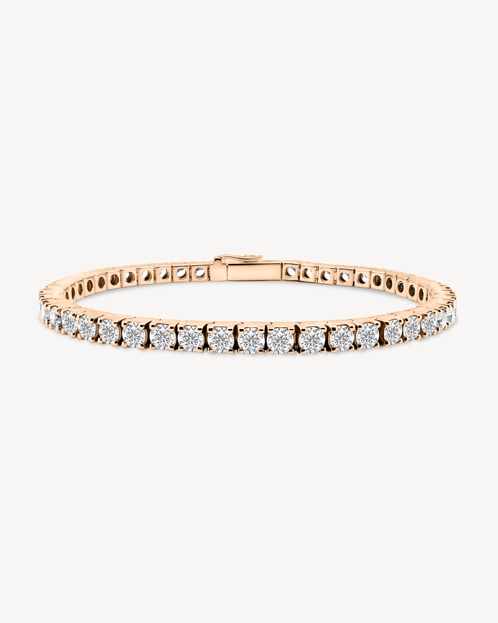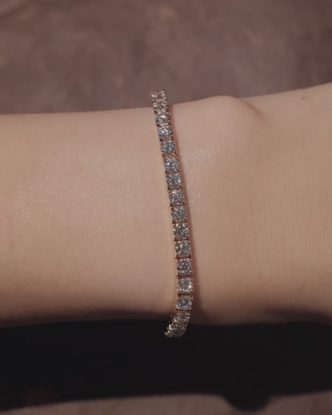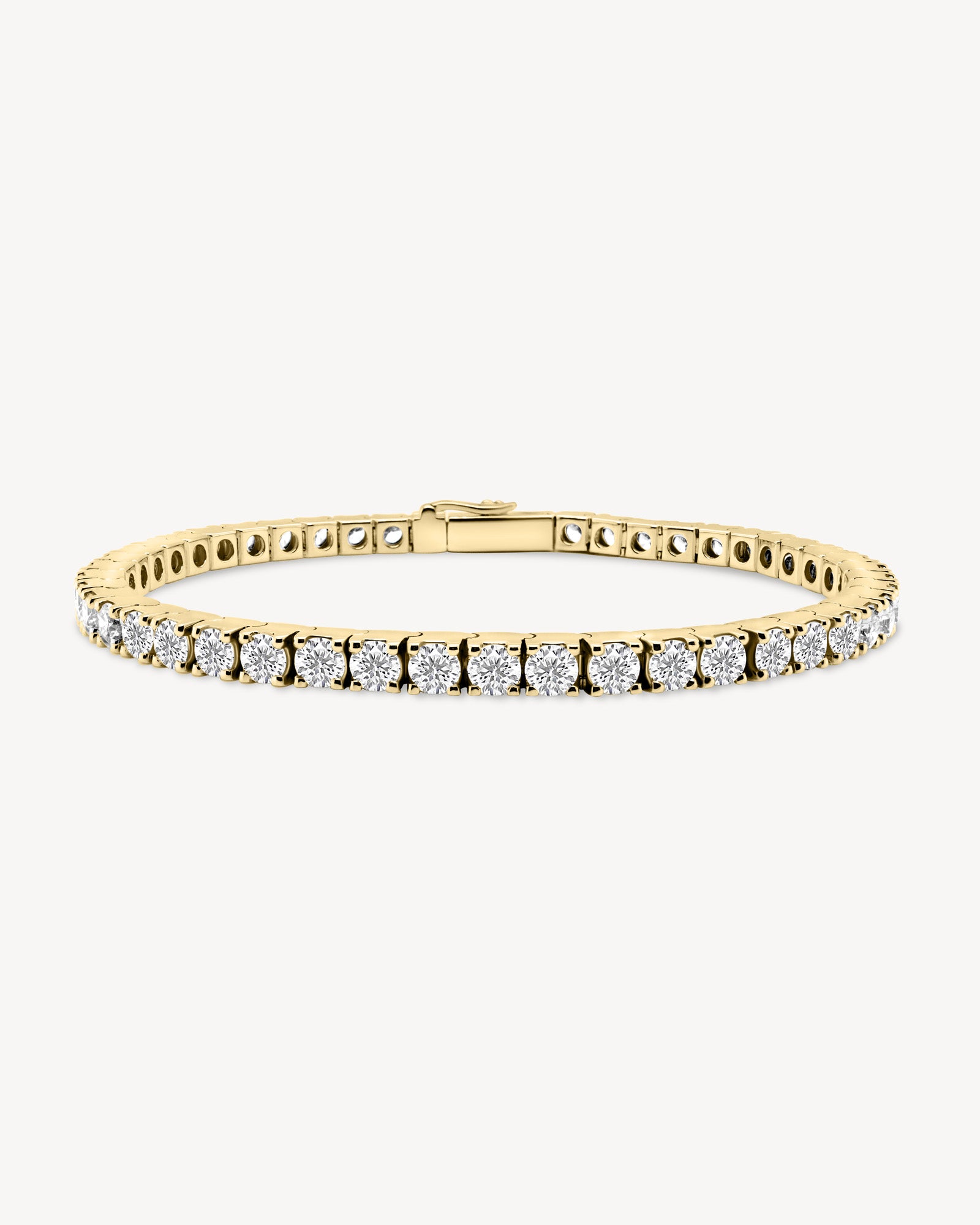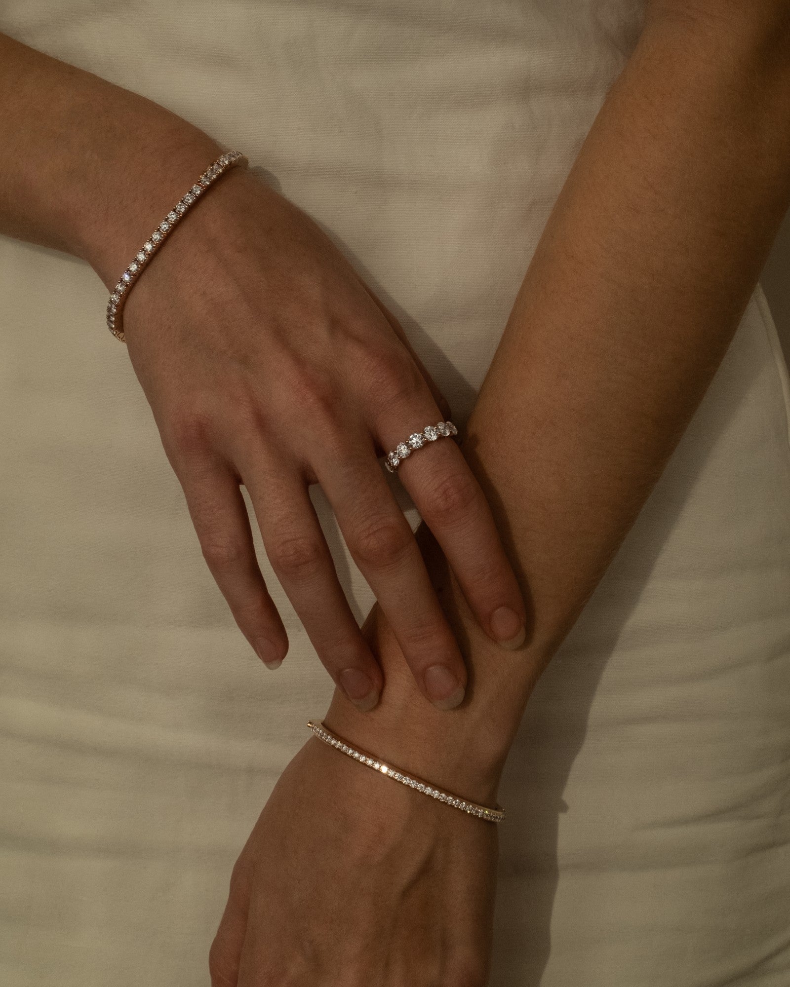 Decadent by design. This bold interpretation of a tennis bracelet is all about weight, richness, and shine. With an intentionally substantial gold setting, it feels as elevated as it looks.
