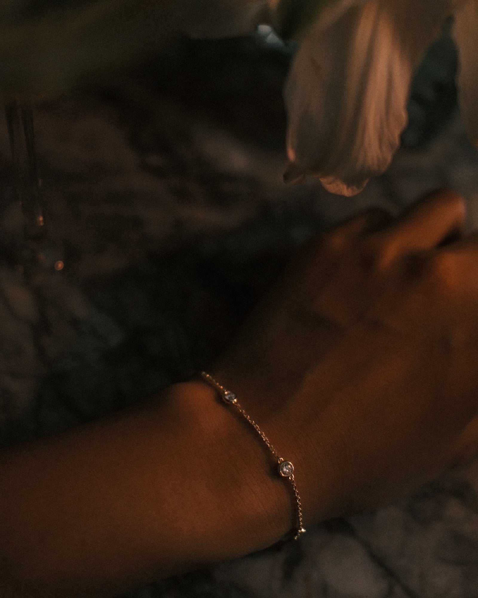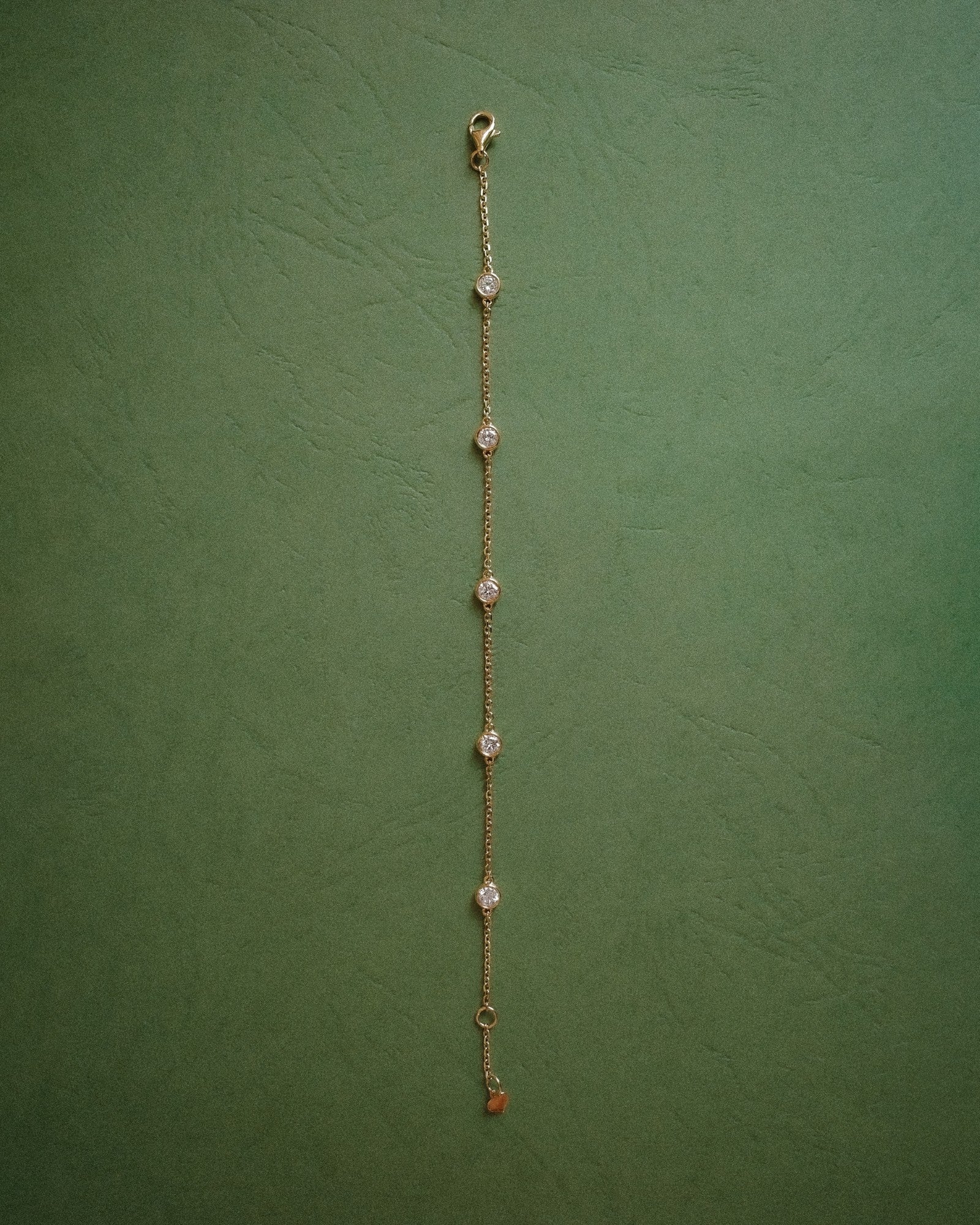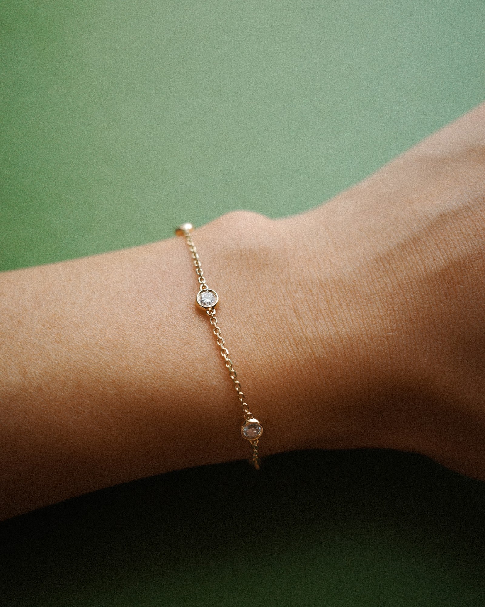 A light, easy layer that features Round cut diamonds spaced along a delicate gold chain. Perfect when you want something casual, effortless, and always in rotation.