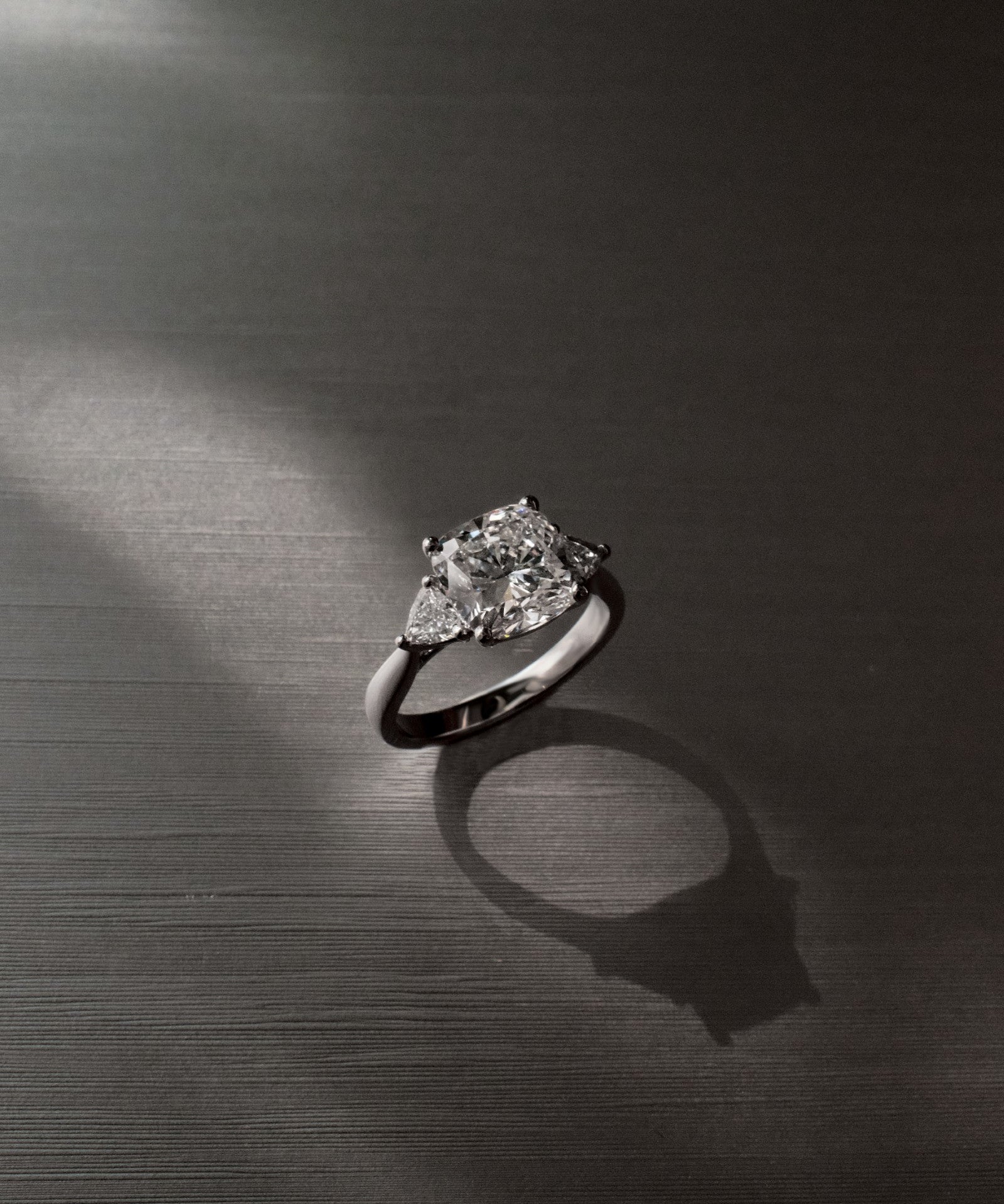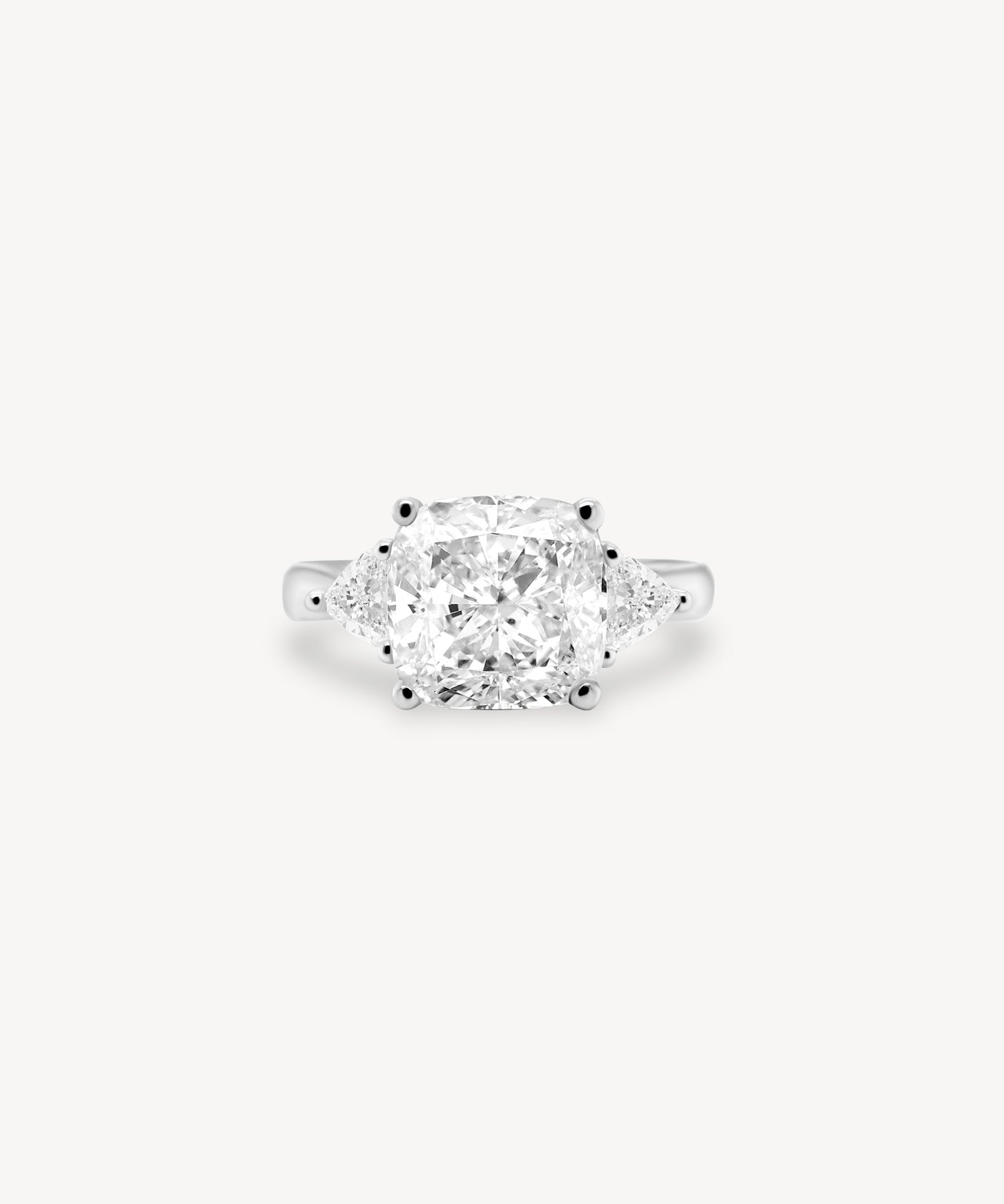 Cushion Cut Diamond Three Stone Ring With Trillion Cut Side Stones