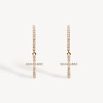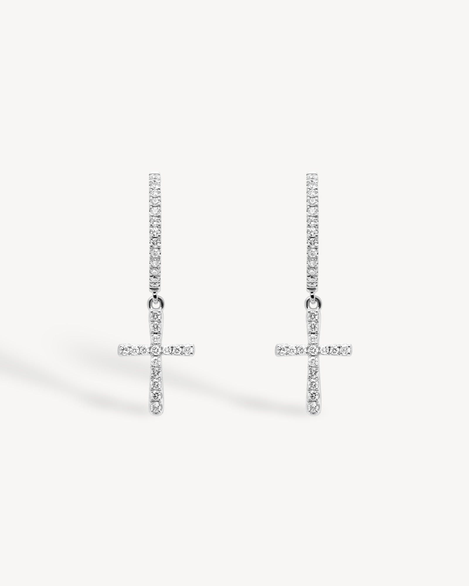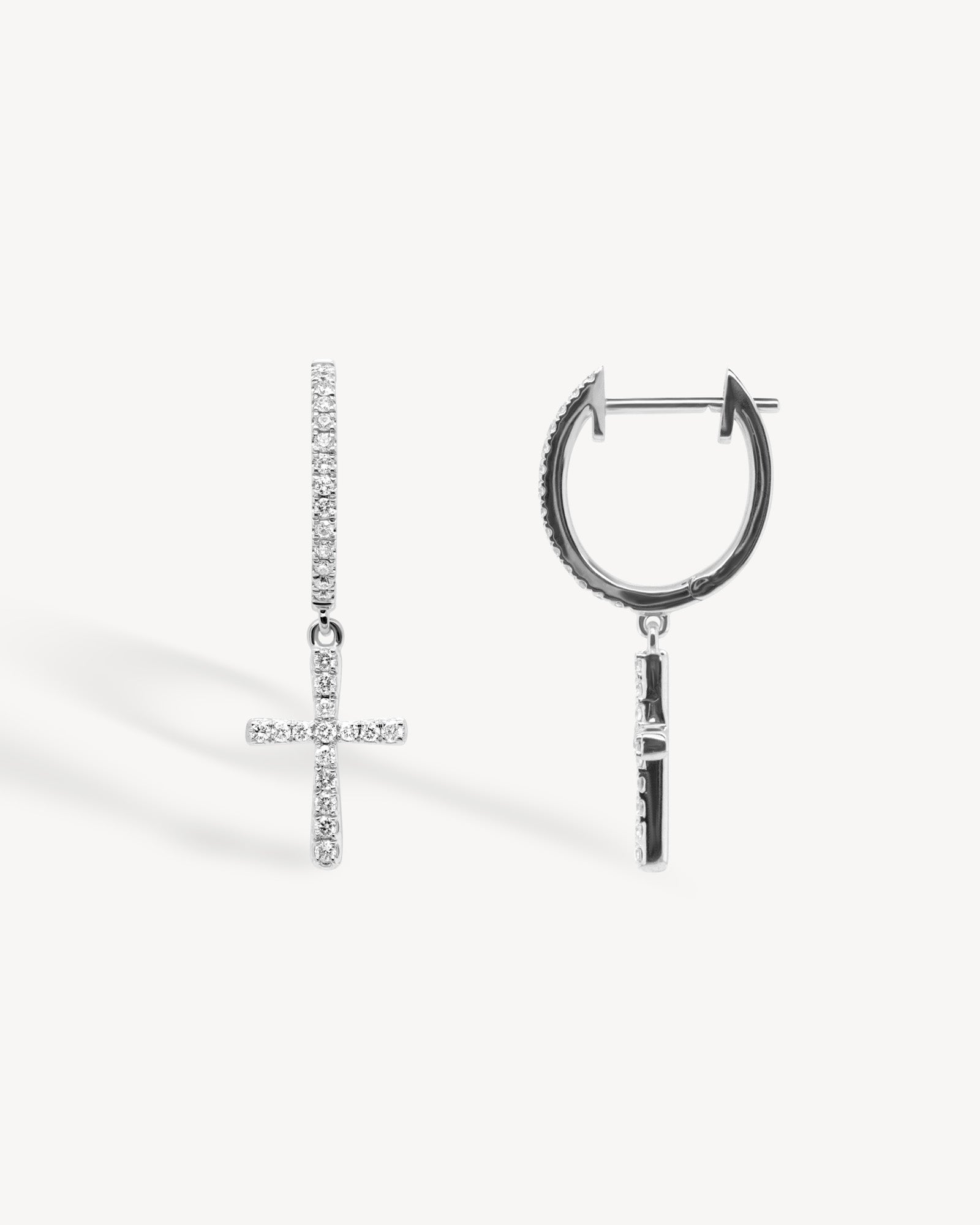 These huggies holds a slim, diamond-lined cross that swings gently with movement. Clean, minimal, and still makes a statement.