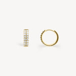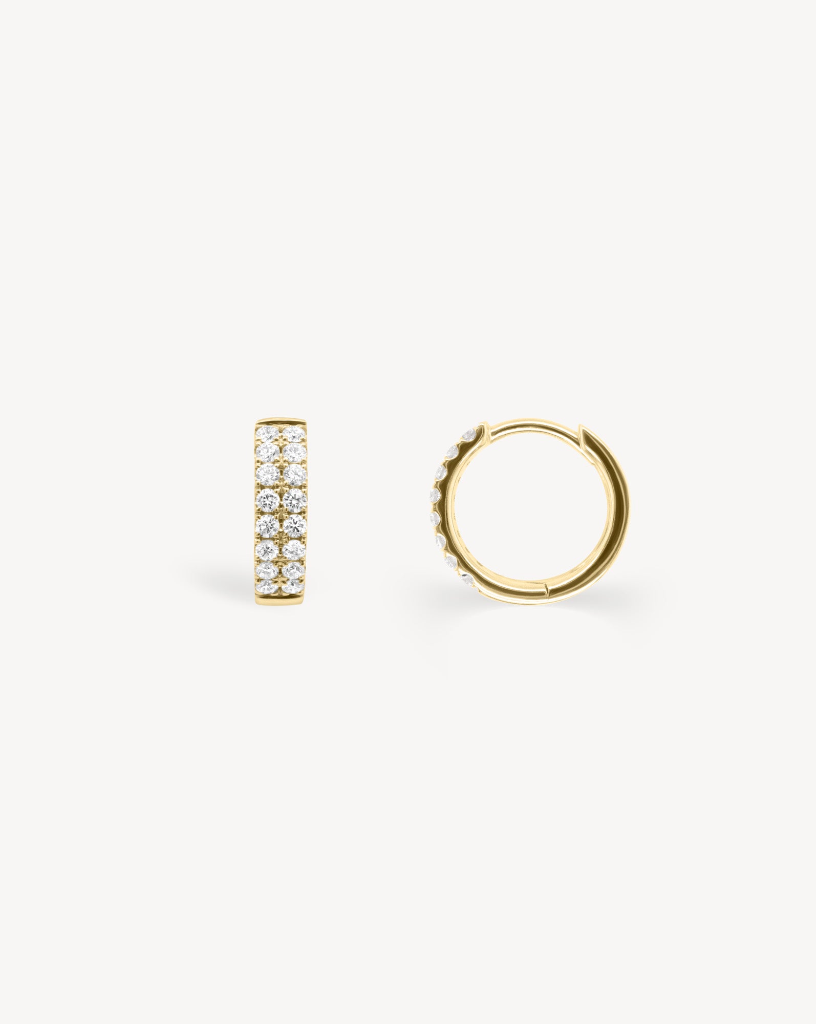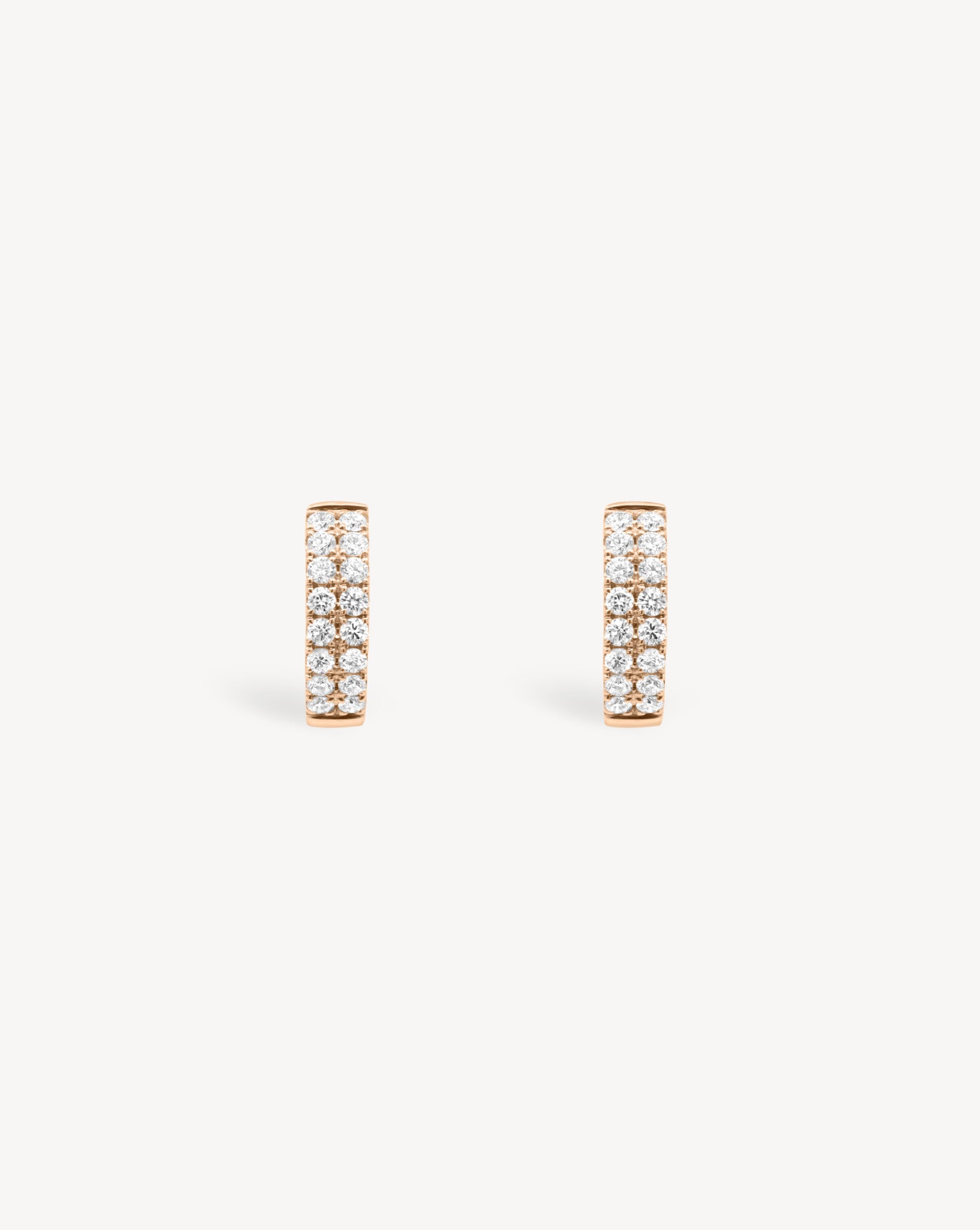 Super minimal, super sleek—this tiny huggie hugs close with two neat rows of diamonds. It’s clean, simple, and just enough sparkle to wear every day.