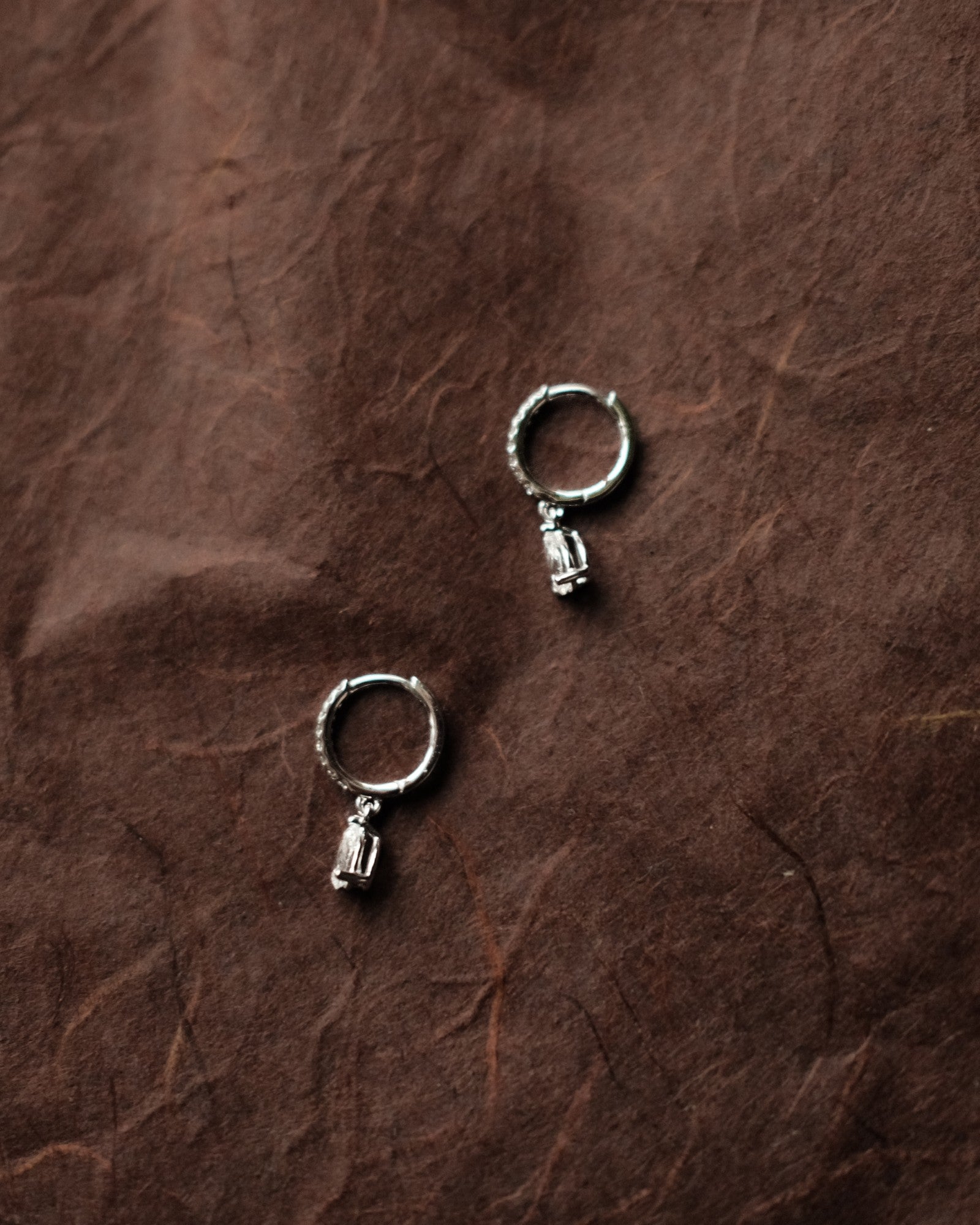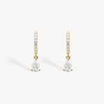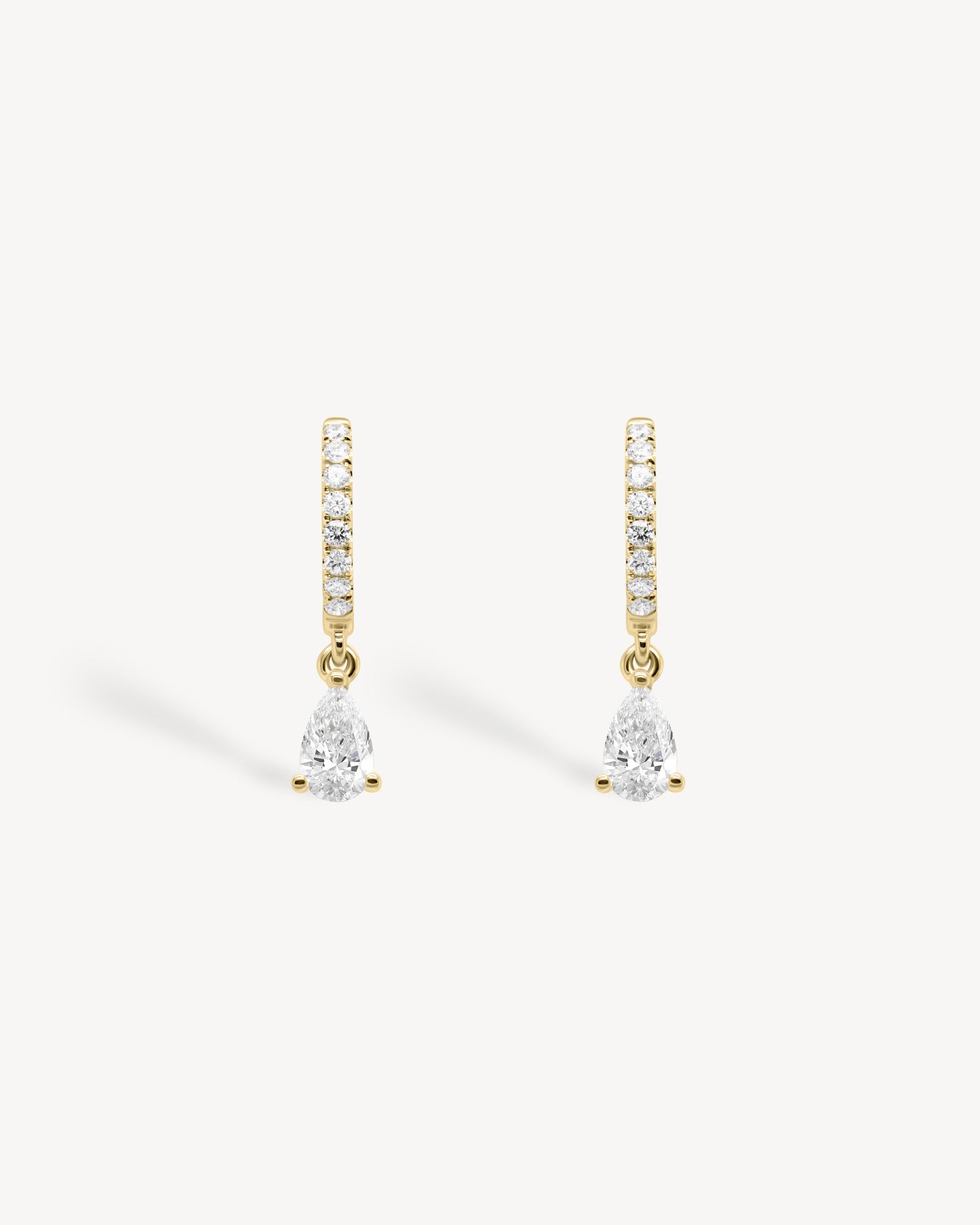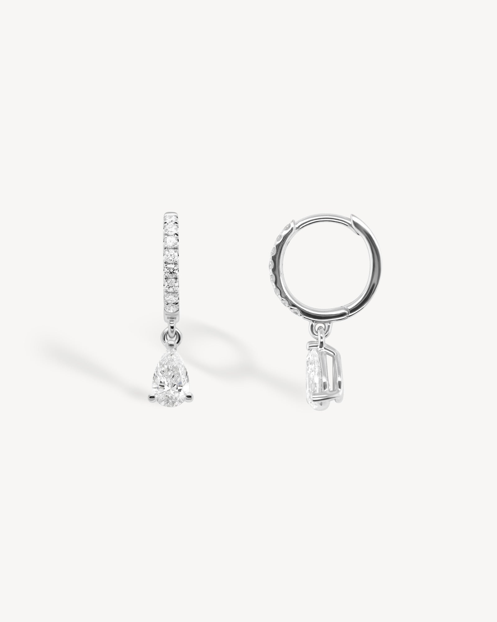 These slim huggies each hold a single dangling Pear cut diamond, adding just enough movement. Simple, but not too simple. Perfect for when you want something easy, delicate, and graceful.