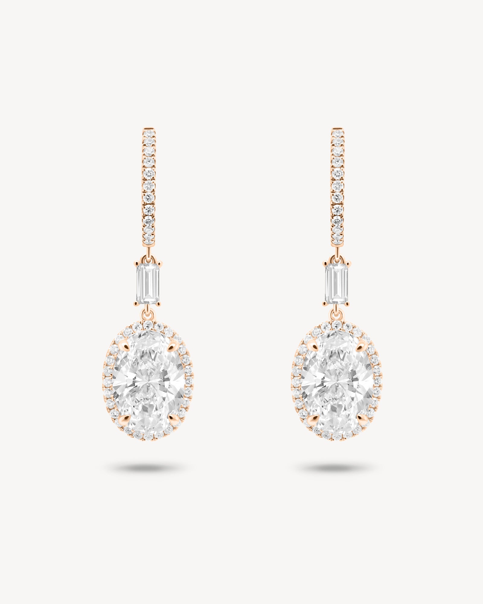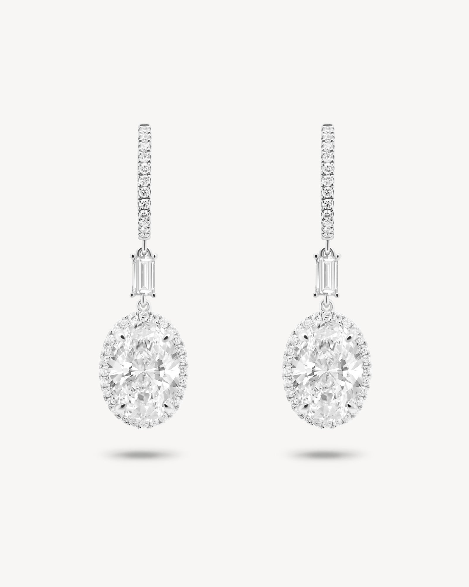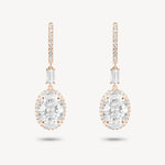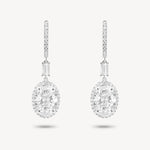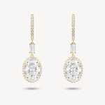 Oval and Baguette Cut Diamond Huggie Halo Drop Earrings
