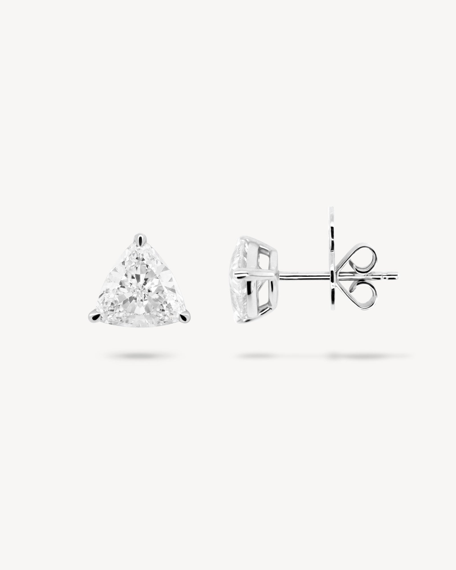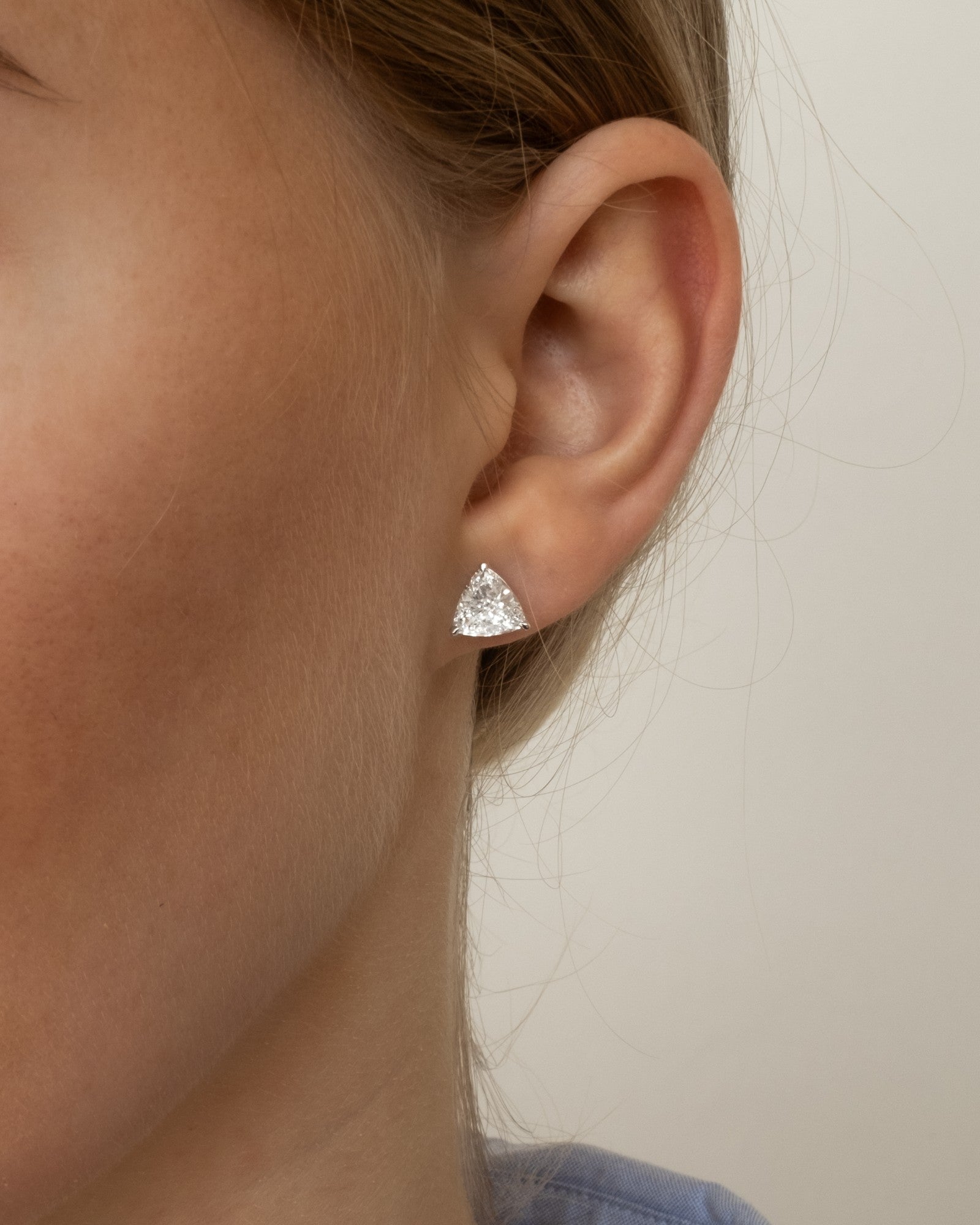 A timeless essential. These Trillion cut studs float effortlessly on the ear, available in your choice of size. Smaller for everyday, larger for extra impact. The kind of classics you reach for when you're looking to accessorize. Finished with secure earnuts to keep your diamonds in place.