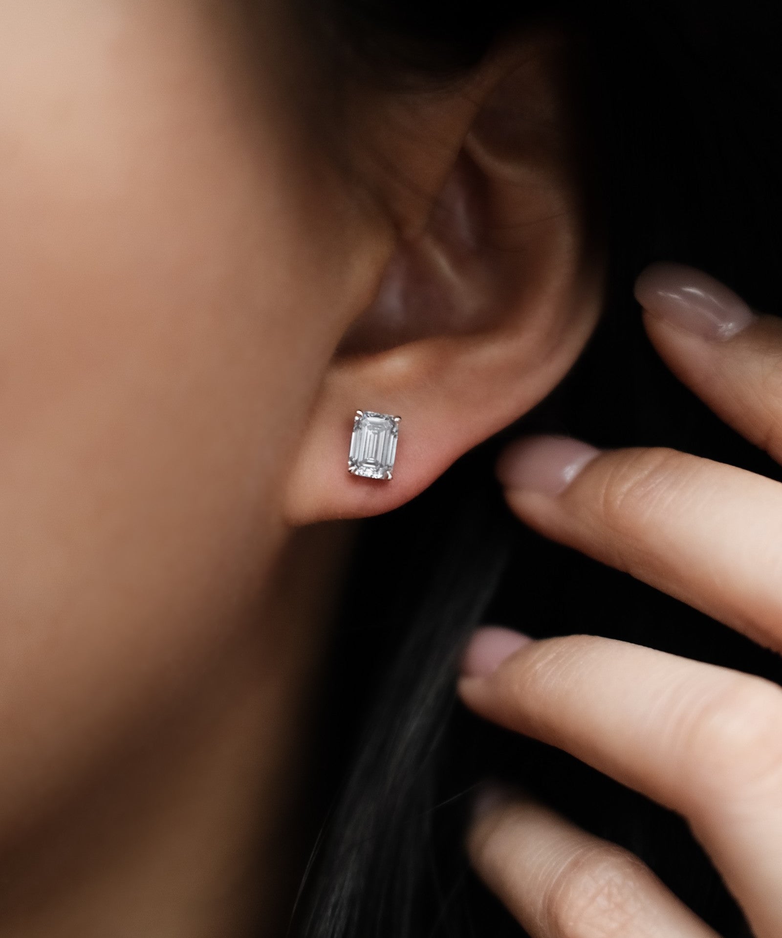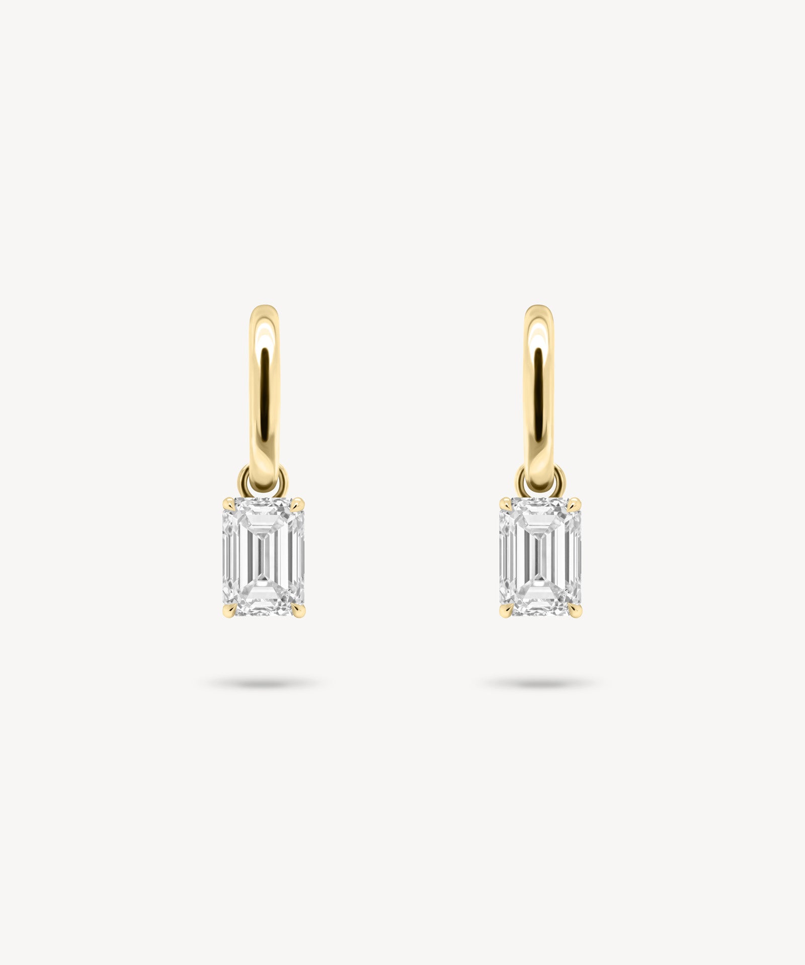 Huggie Earrings with Removable Emerald Cut Diamond Drops