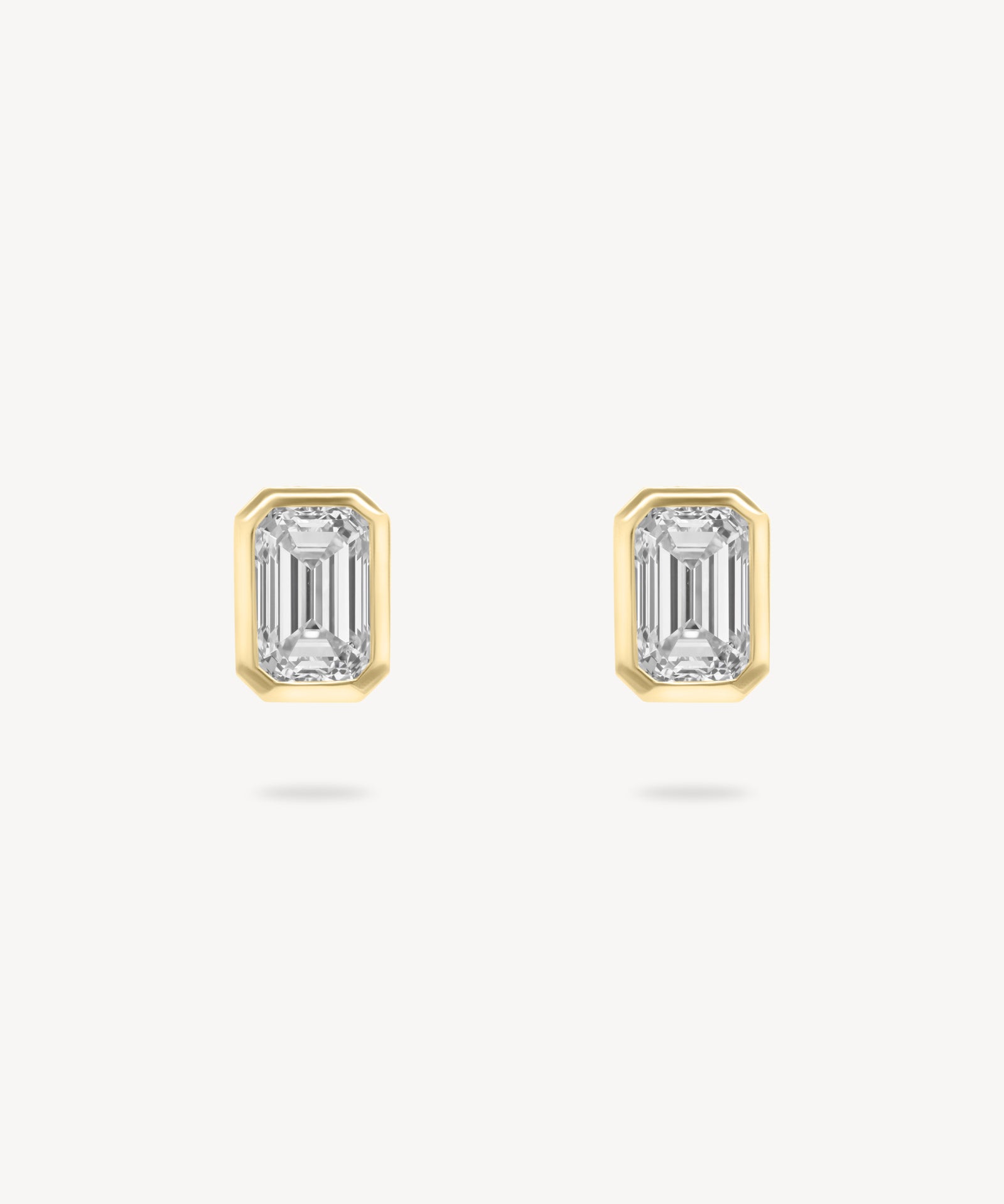 Huggie Earrings with Removable Emerald Cut Bezel Diamond Drops