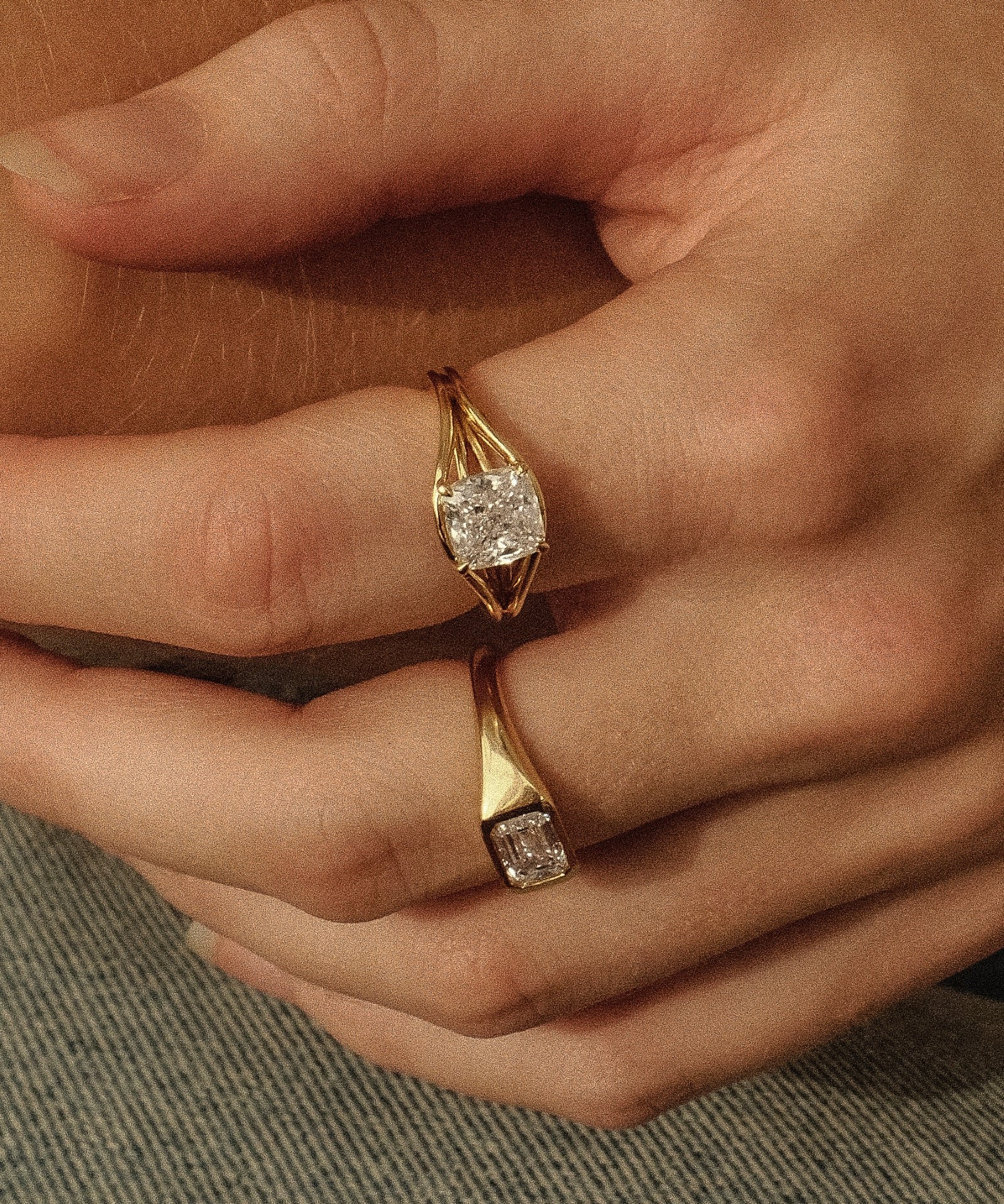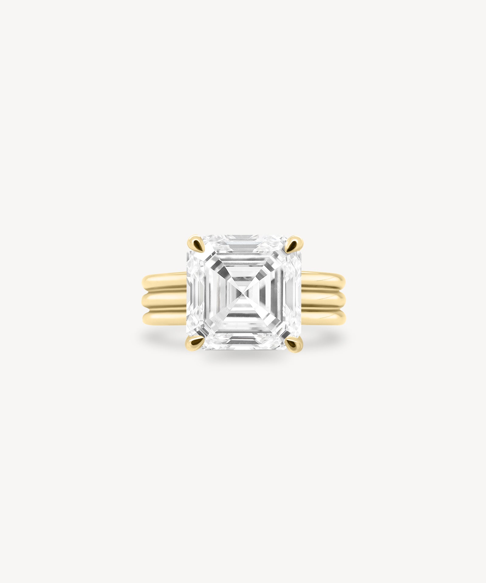 Asscher Cut Diamond Triple-Ribbed Solitaire Ring