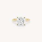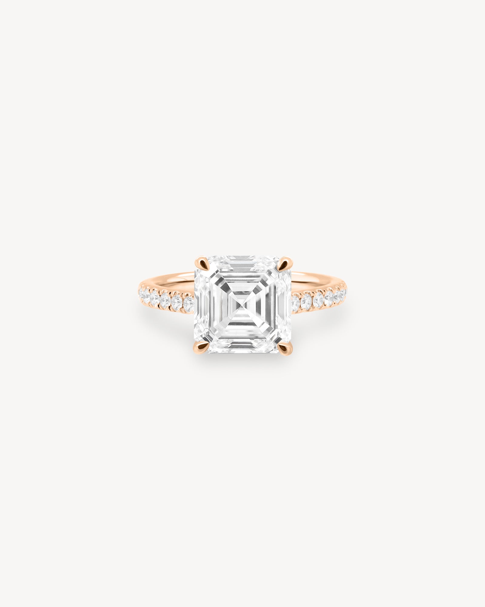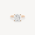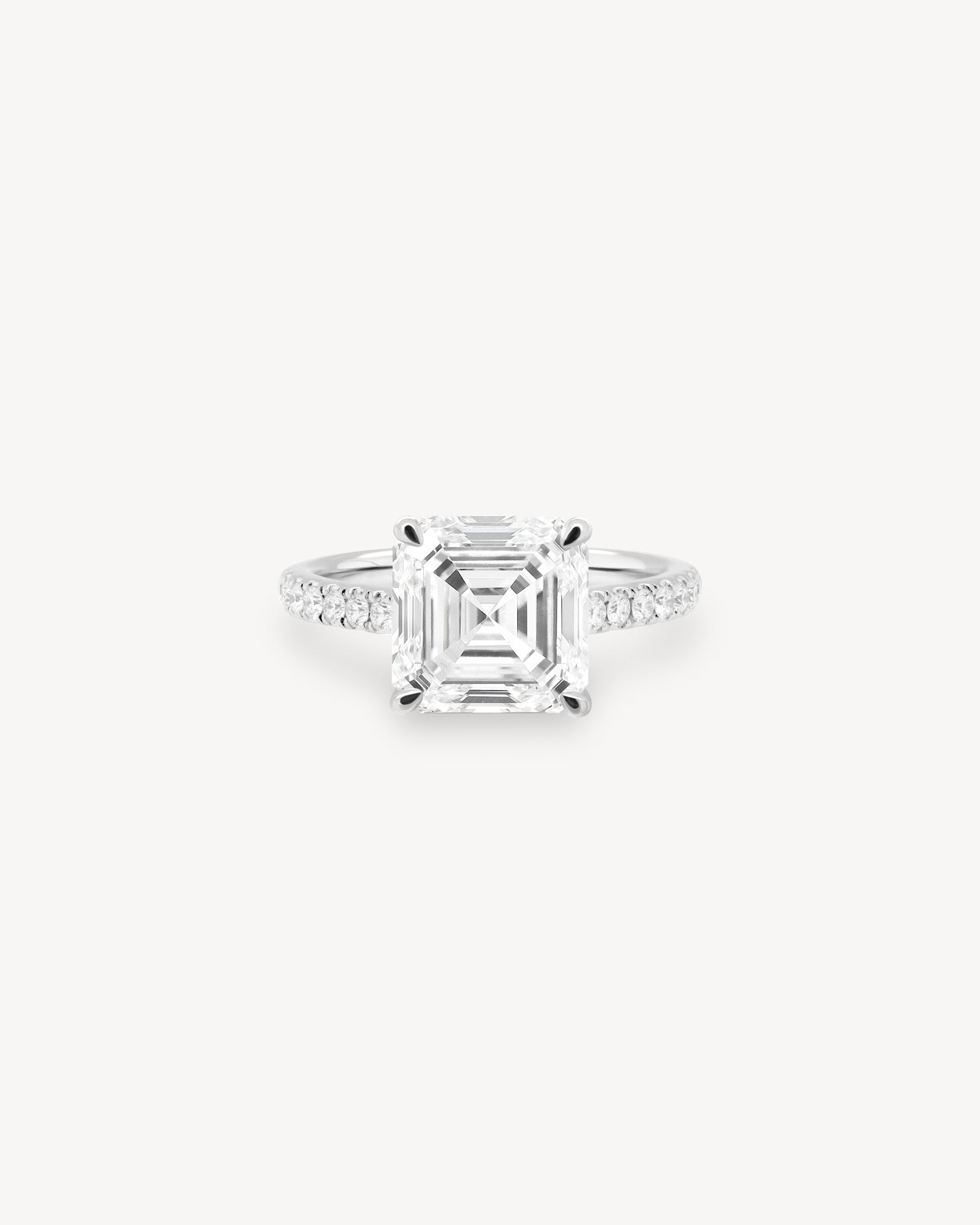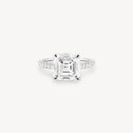 Asscher Cut Diamond Pavé Ring in Cathedral Setting with Hidden Halo