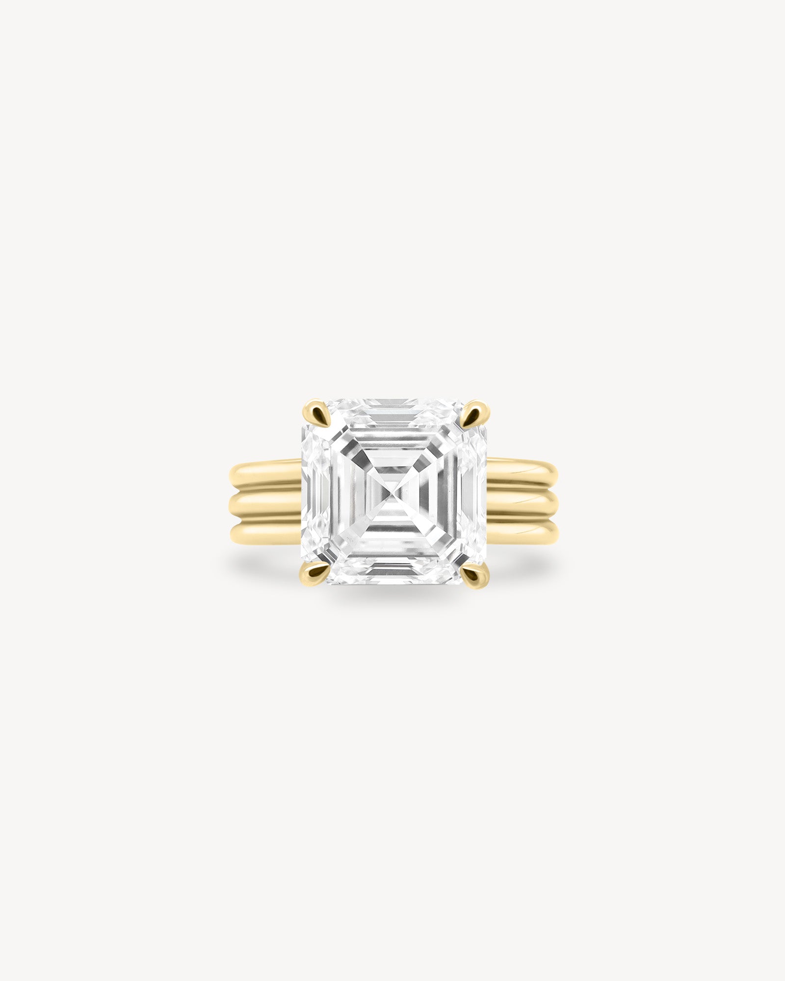 Asscher Cut Diamond Triple-Ribbed Solitaire Ring