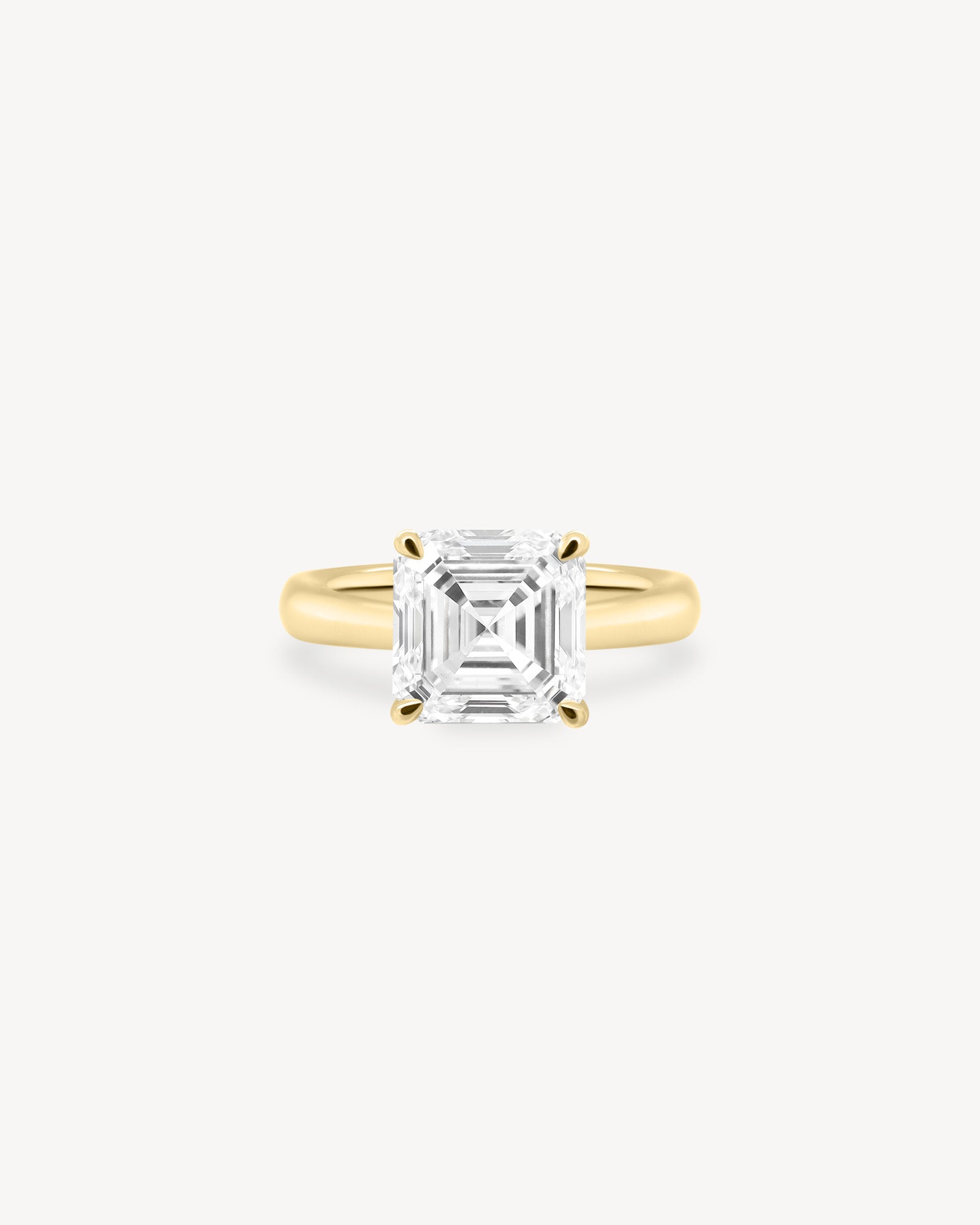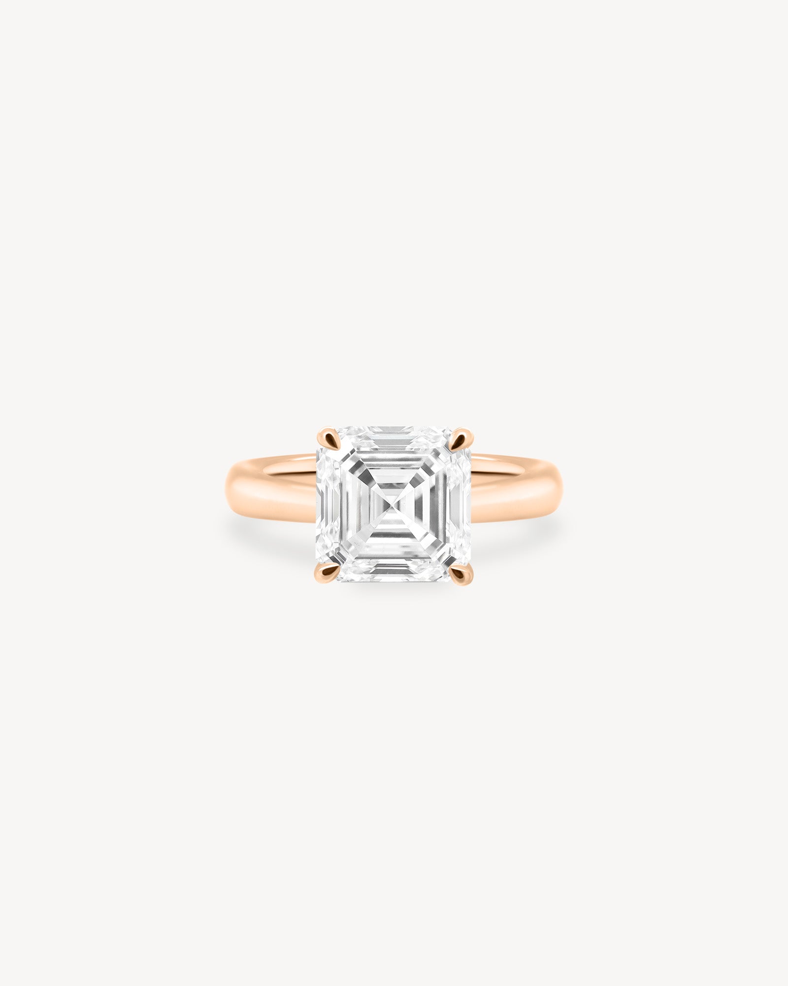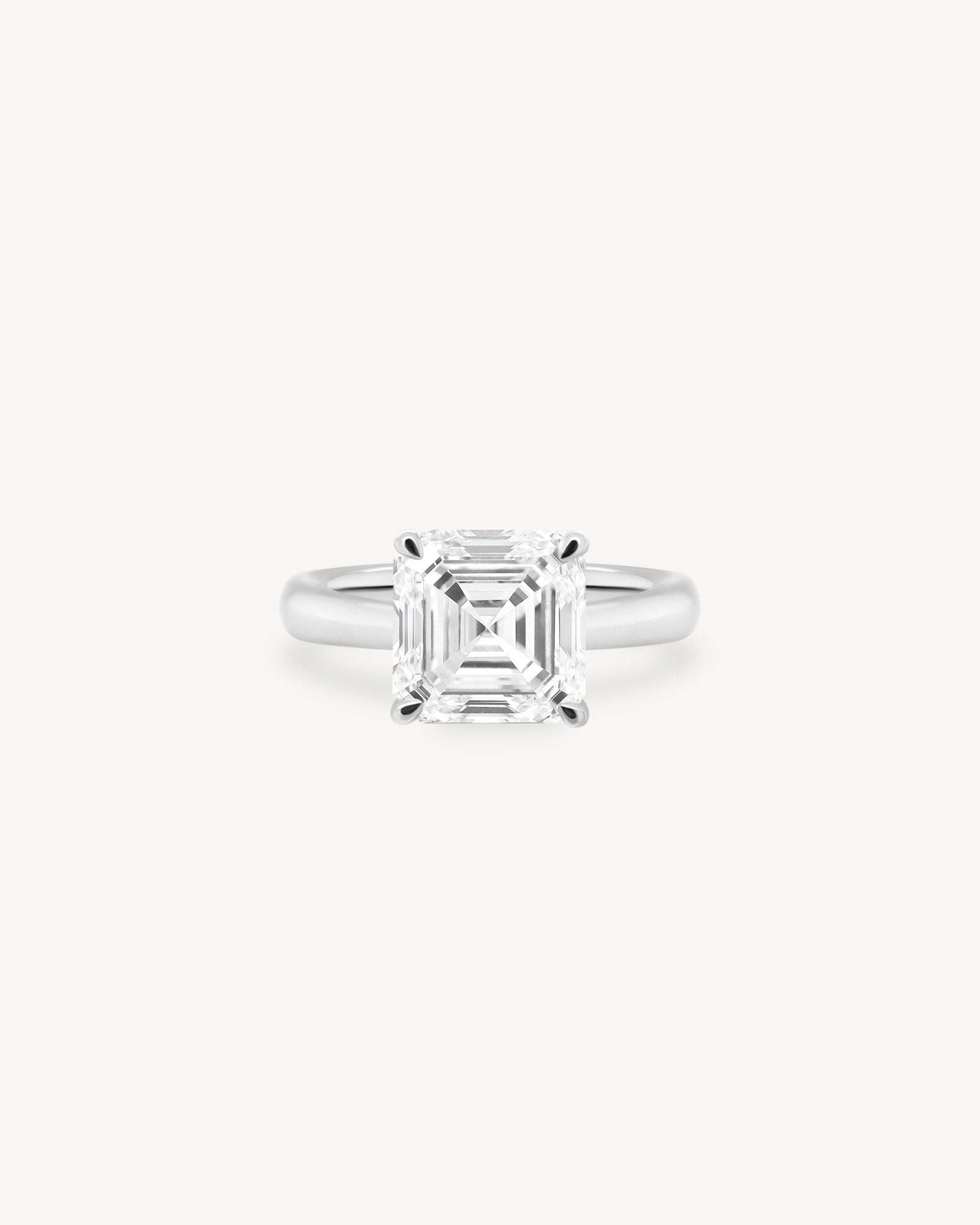 Classic Asscher Cut Diamond Solitaire Ring in Cathedral Setting