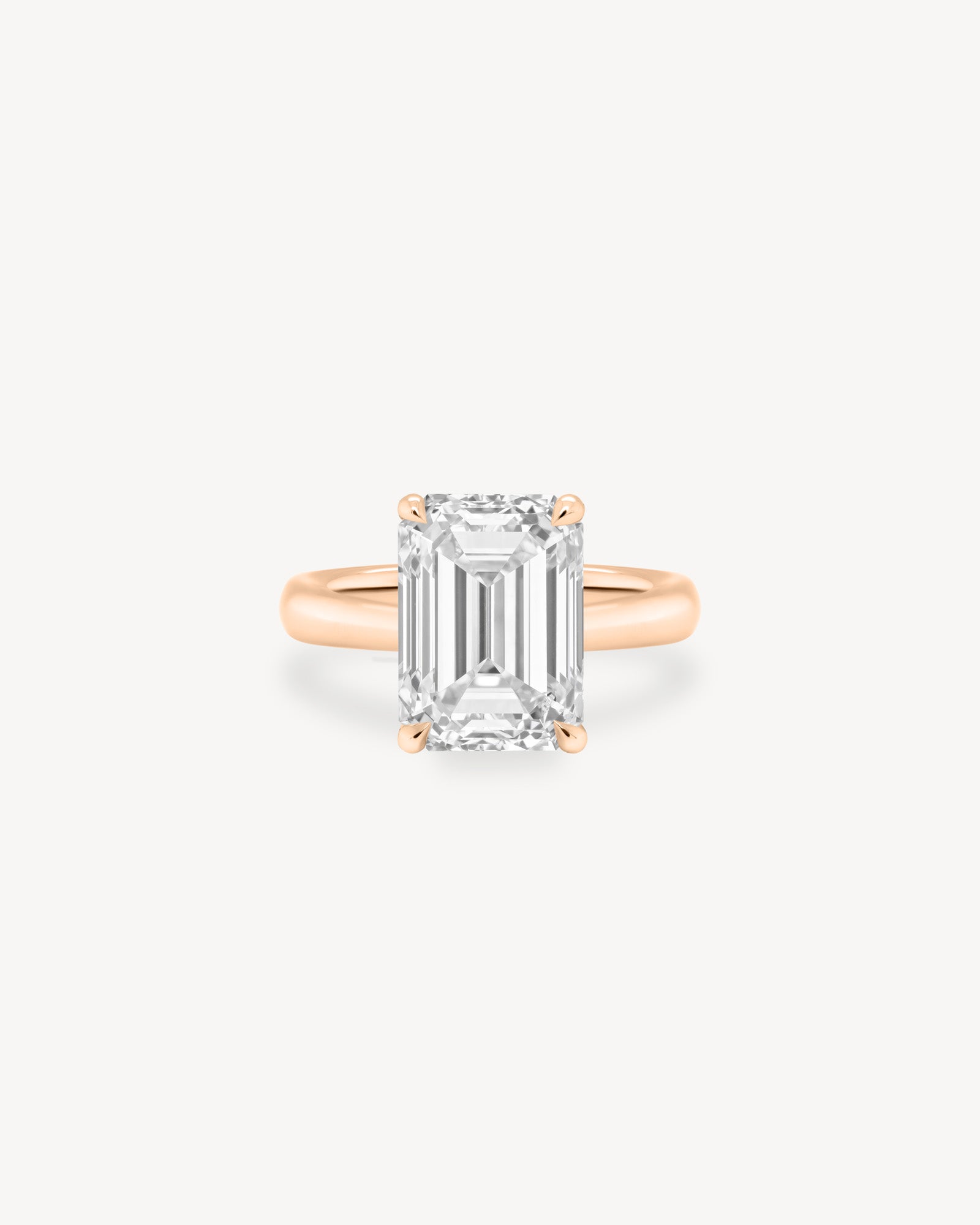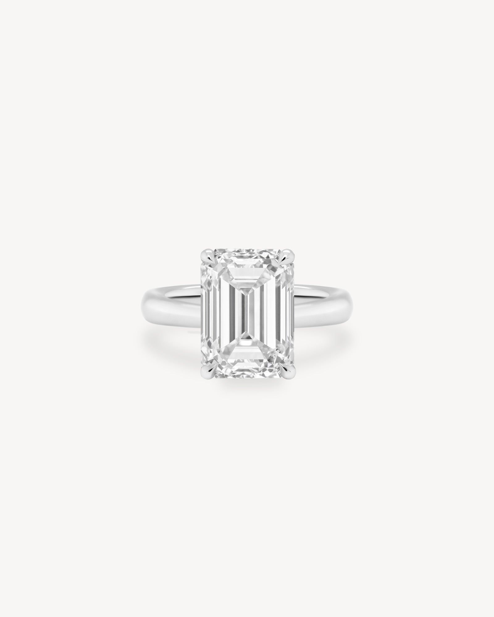 Classic Emerald Cut Diamond Solitaire Ring in Cathedral Setting