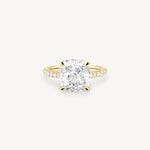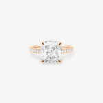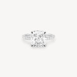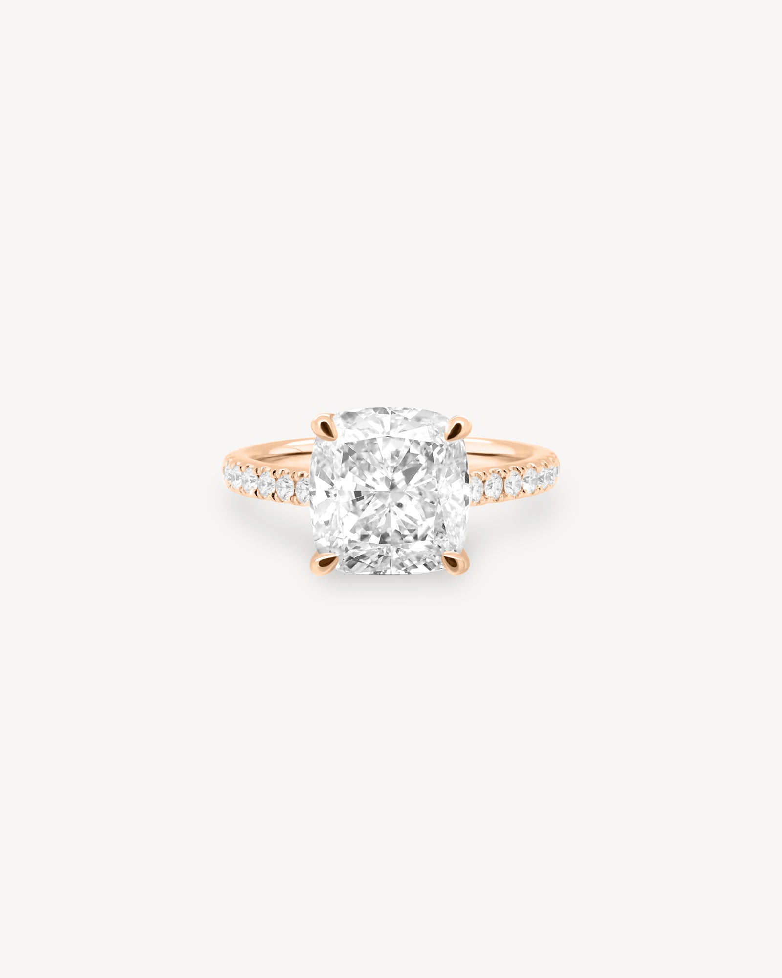 Cushion Cut Diamond Pavé Ring in Cathedral Setting with Hidden Halo