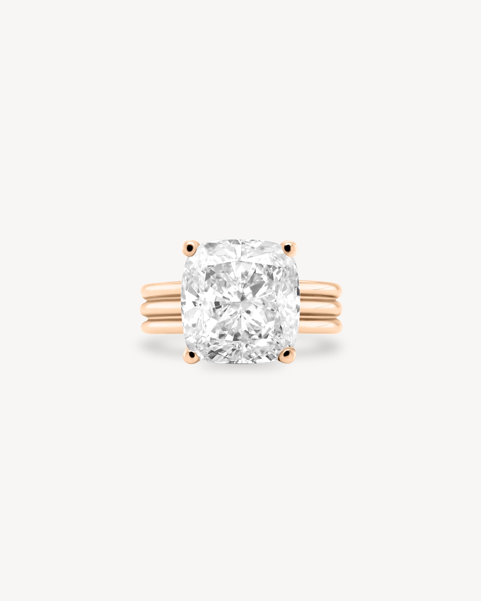 Cushion Cut Diamond Triple-Ribbed Solitaire Ring