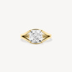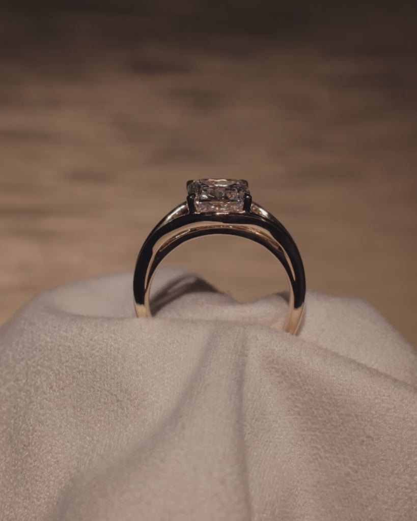 Striking from every angle, this ring features a bold Cushion cut center framed by a distinctive split band. The double-layered design isn’t just for show. It creates a contoured fit that sits smoothly against the finger for effortless, all-day wear. Sculptural yet wearable, it’s made to stand out without compromising on comfort.
