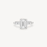 Images show a 2ct Emerald cut center stone with approx. 1.6mm band width