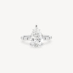 Images show a 2ct Pear cut center stone with approx. 1.6mm band width