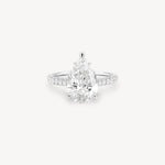 Pear Cut Diamond Pavé Ring in Cathedral Setting with Hidden Halo