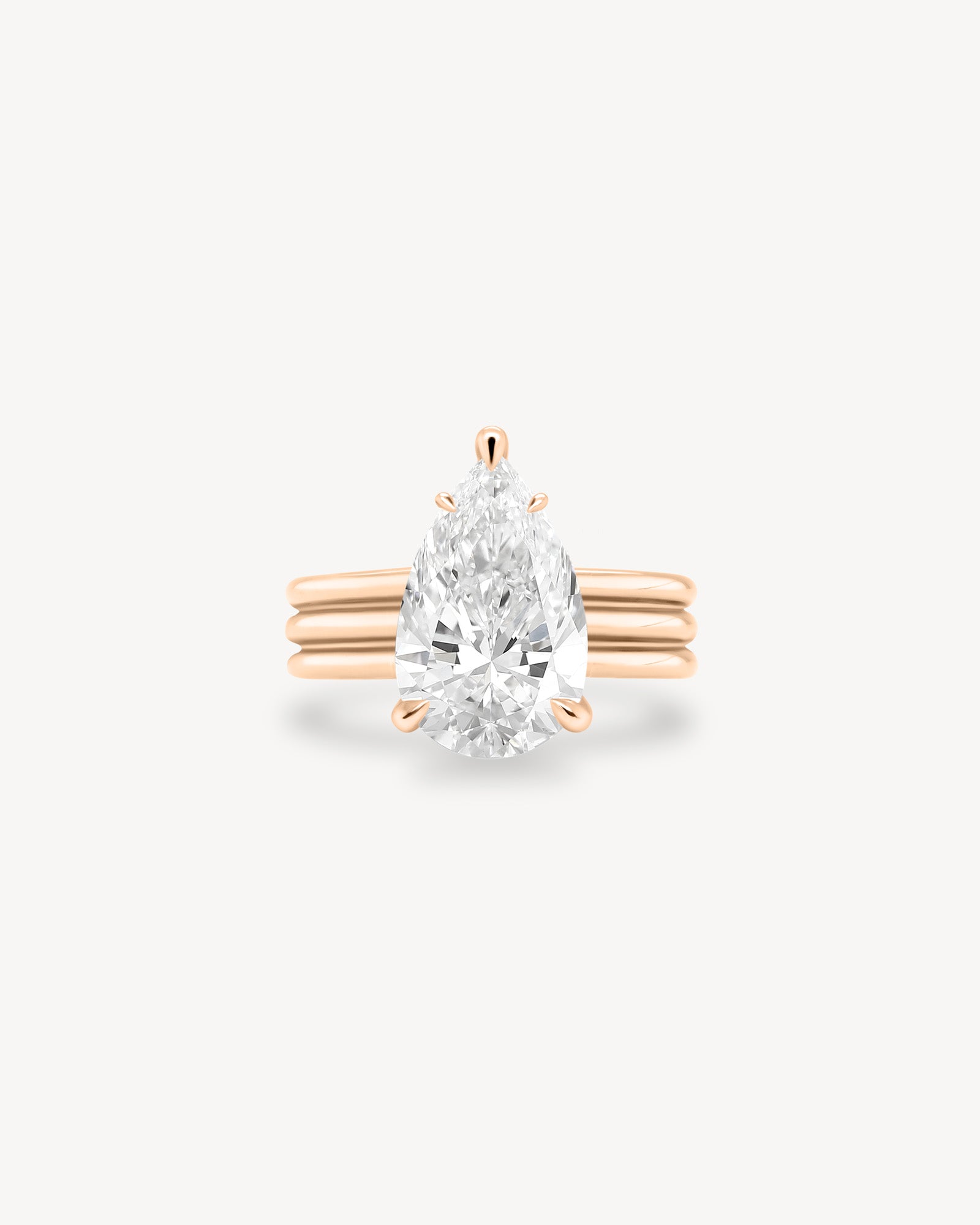 Pear Cut Diamond Triple-Ribbed Solitaire Ring
