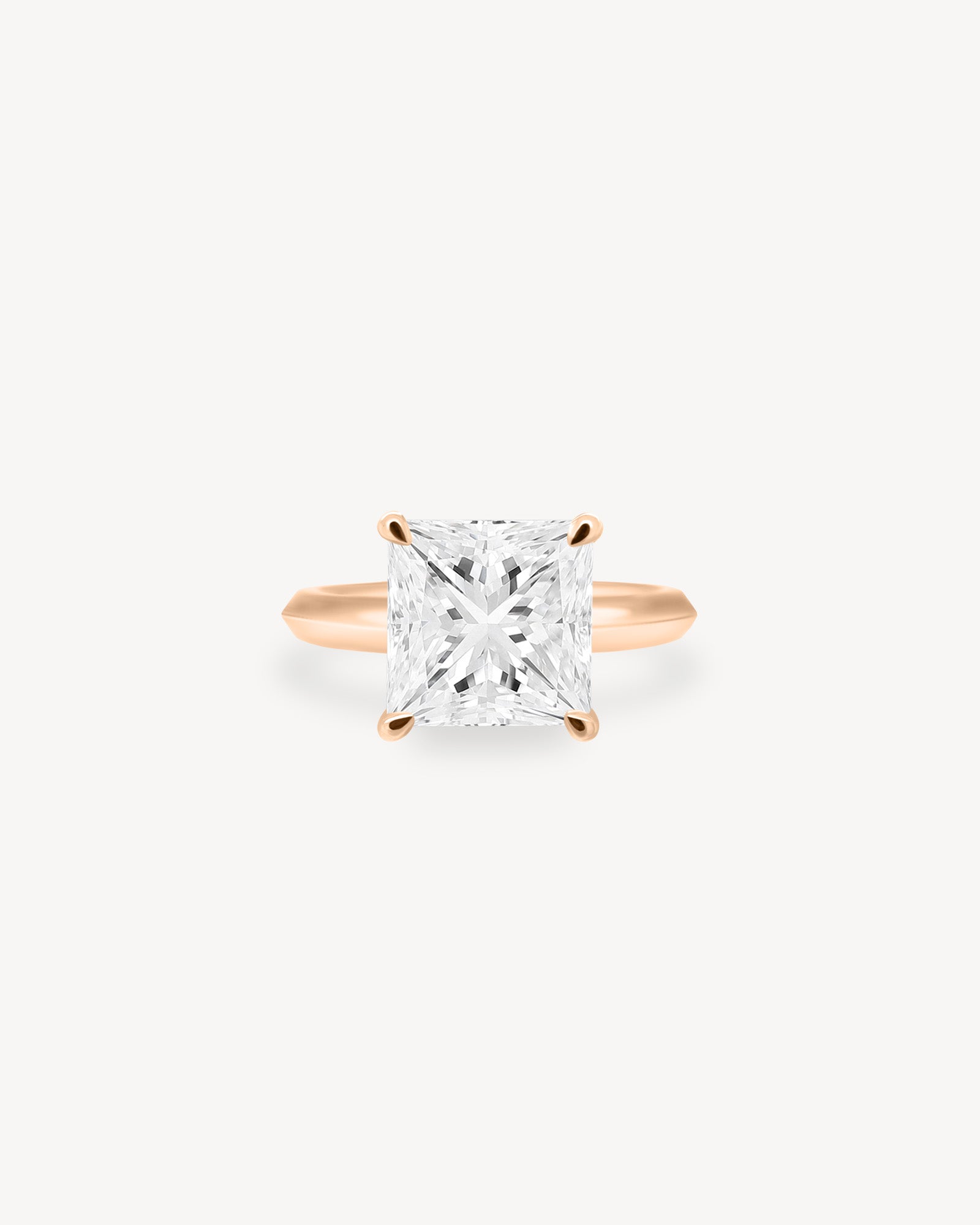 A classic solitaire with a sharp twist. This ring features a Princess cut diamond set on a knife edge band, drawing the eye to the stone’s striking shape and brilliant facets. The clean profile enhances the diamond’s presence, making it a timeless choice with a modern edge.