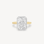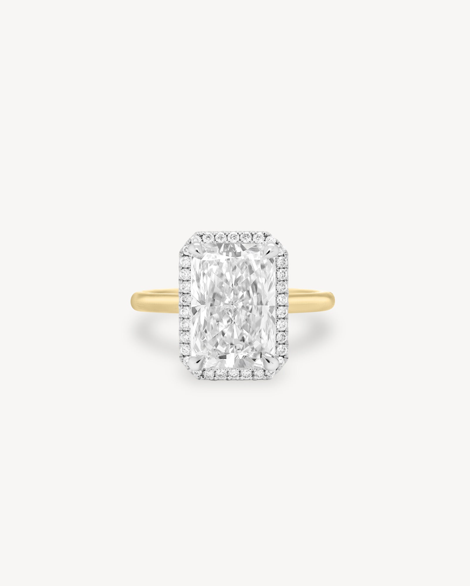 Radiant Cut Diamond Halo Two-Tone Ring in Cathedral Setting