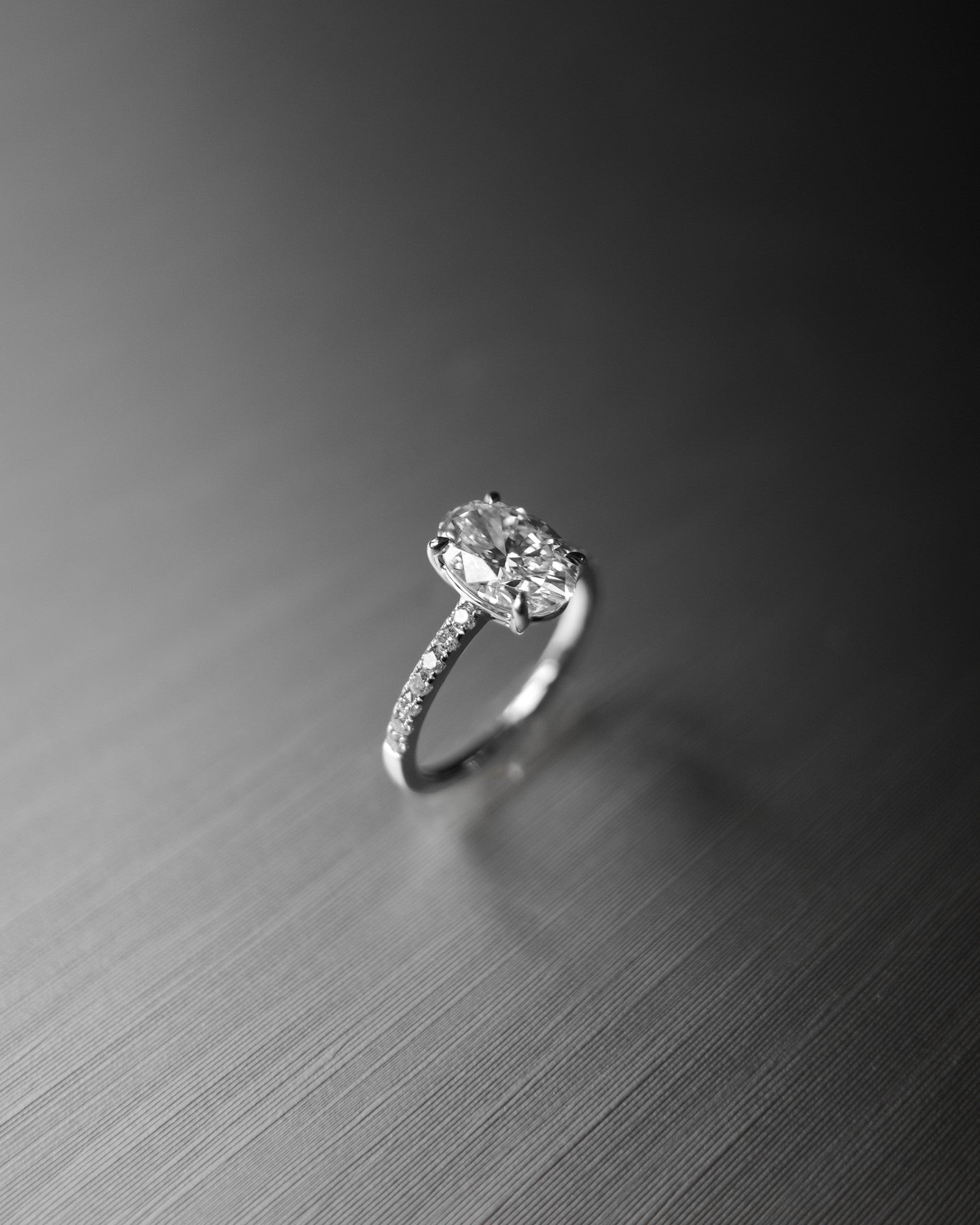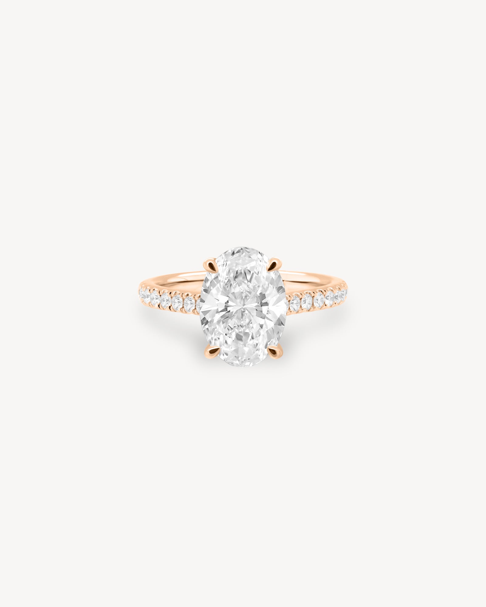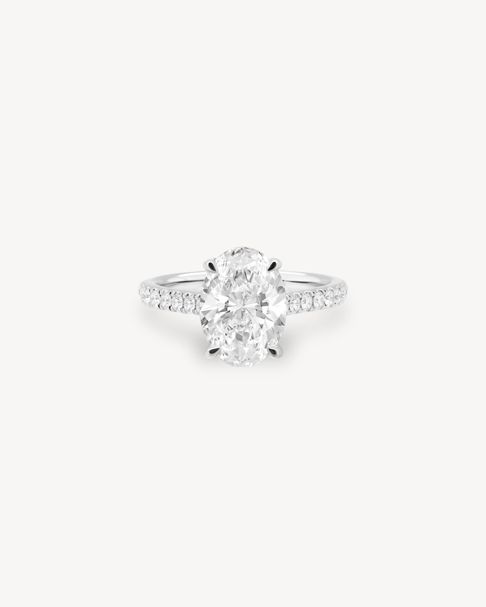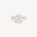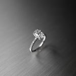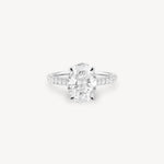 Oval Cut Diamond Pavé Ring in Cathedral Setting with Hidden Halo