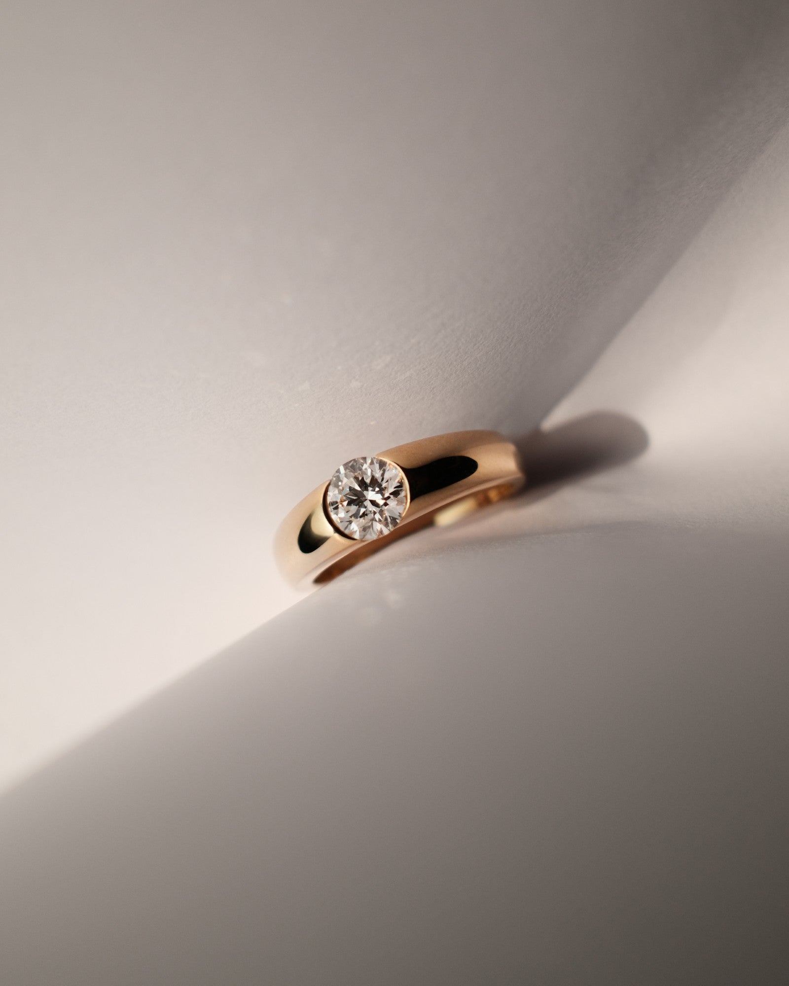 Round Cut Diamond Solitaire Ring in Half Bezel Setting