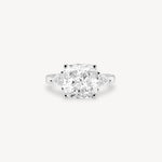 Images show a 3ct Cushion cut center stone with approx. 2.8mm band width
