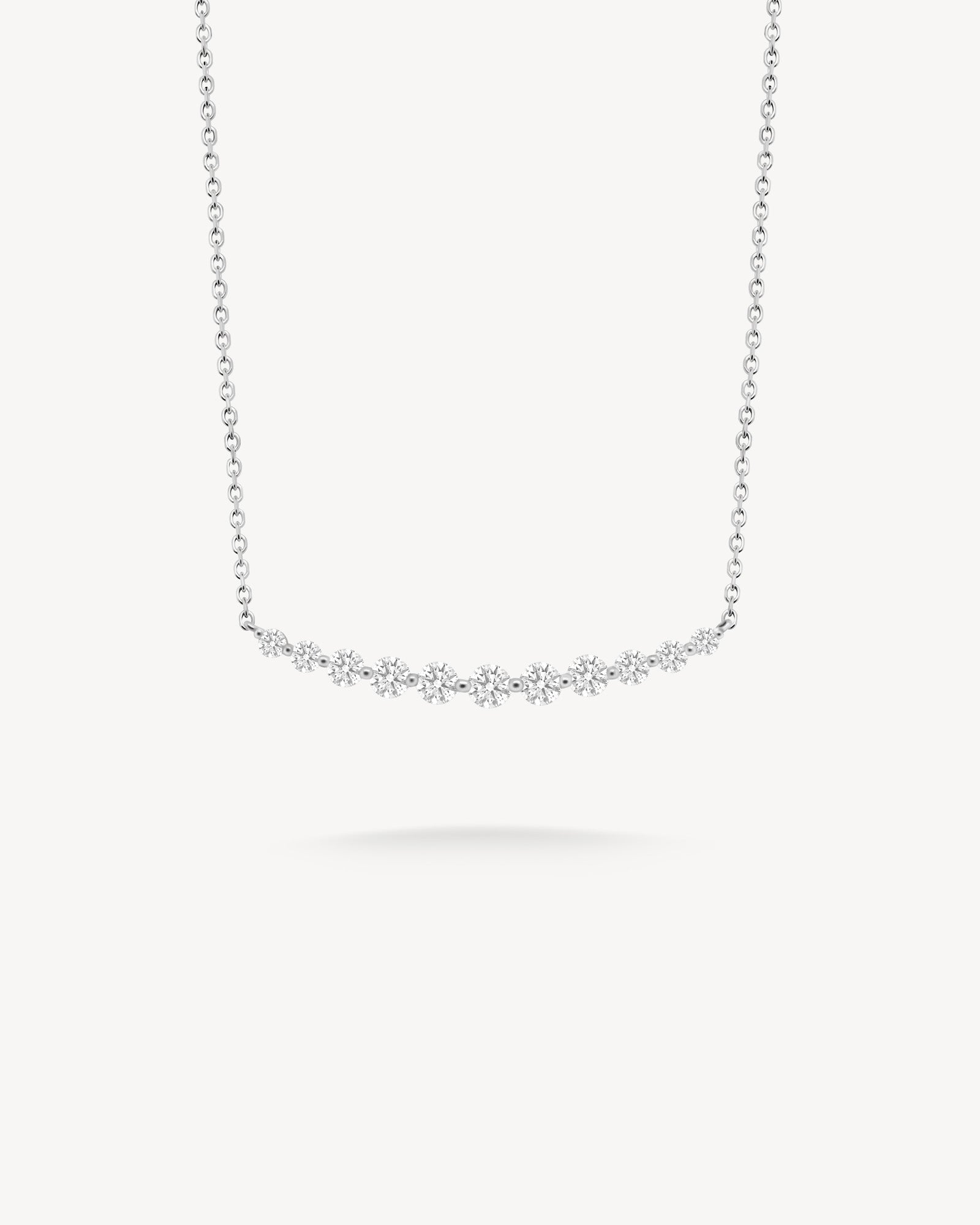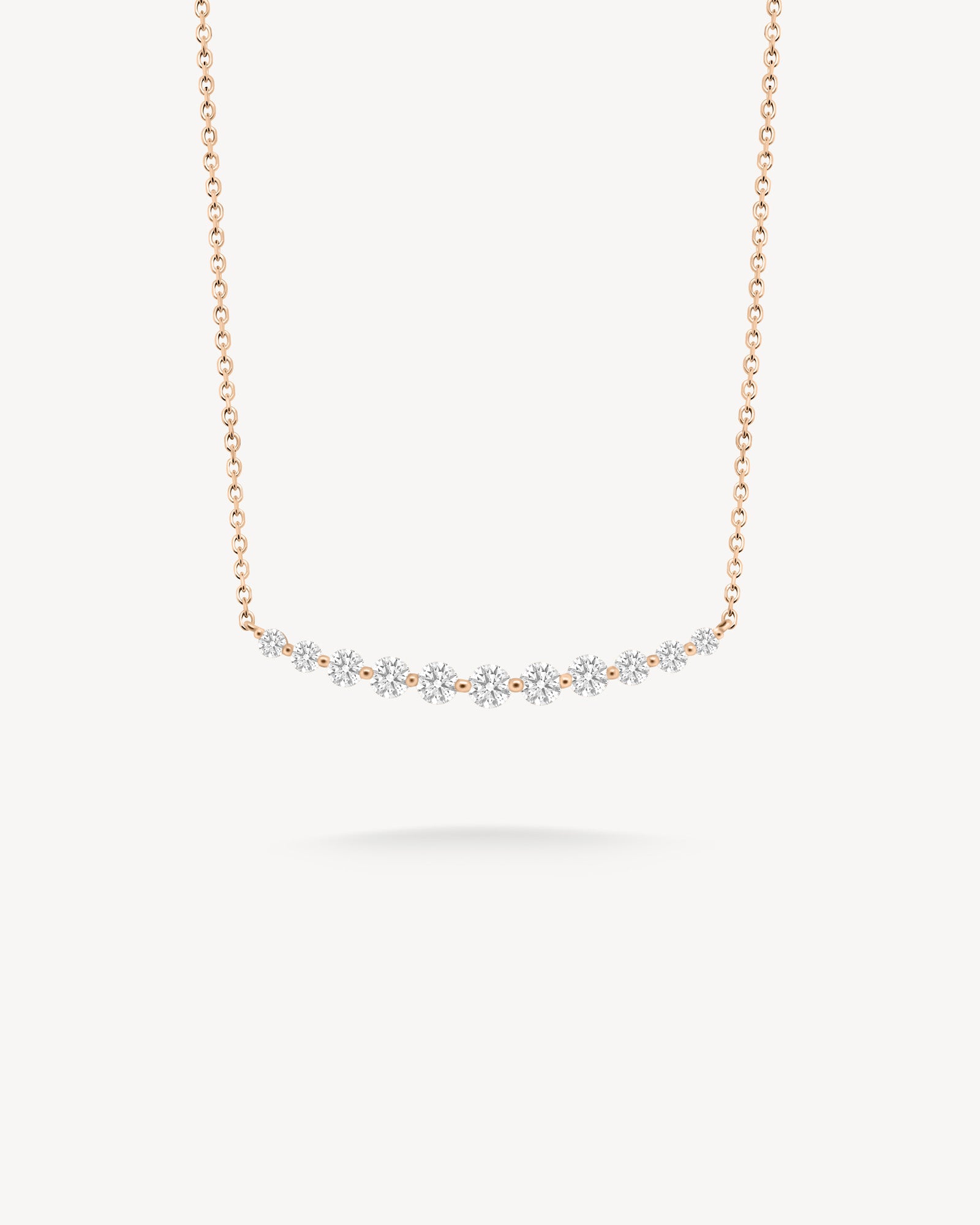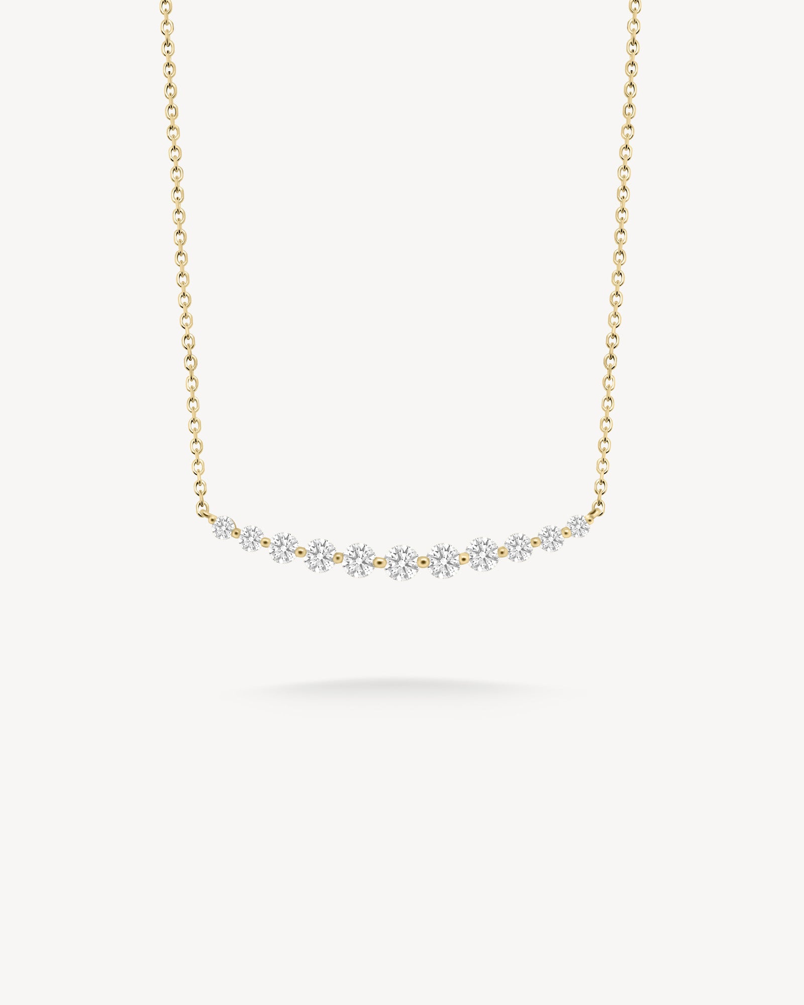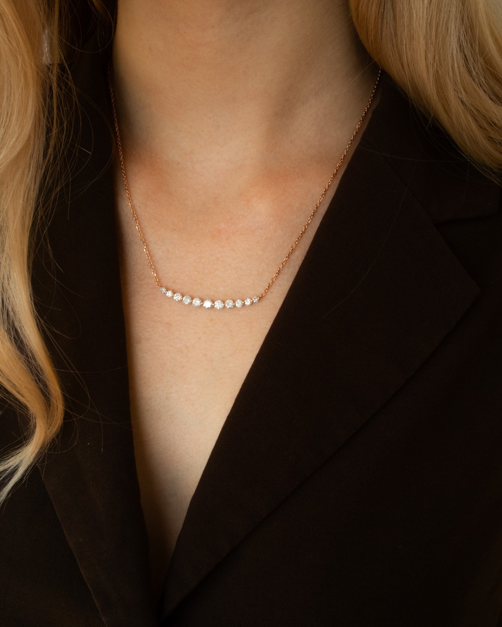 A row of Round diamonds, subtly graduating in size for a natural curve and soft taper. Minimal and precise, built to layer, but strong enough to stand alone.