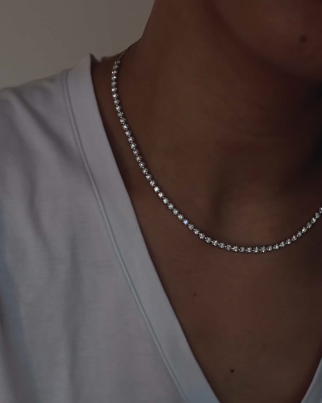 A versatile take on the classic tennis necklace. Crafted in an enlargement setting and finished with an adjustable chain, light enough for everyday wear and discreet at the back. Perfect under hair or layered beneath a jacket.