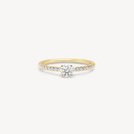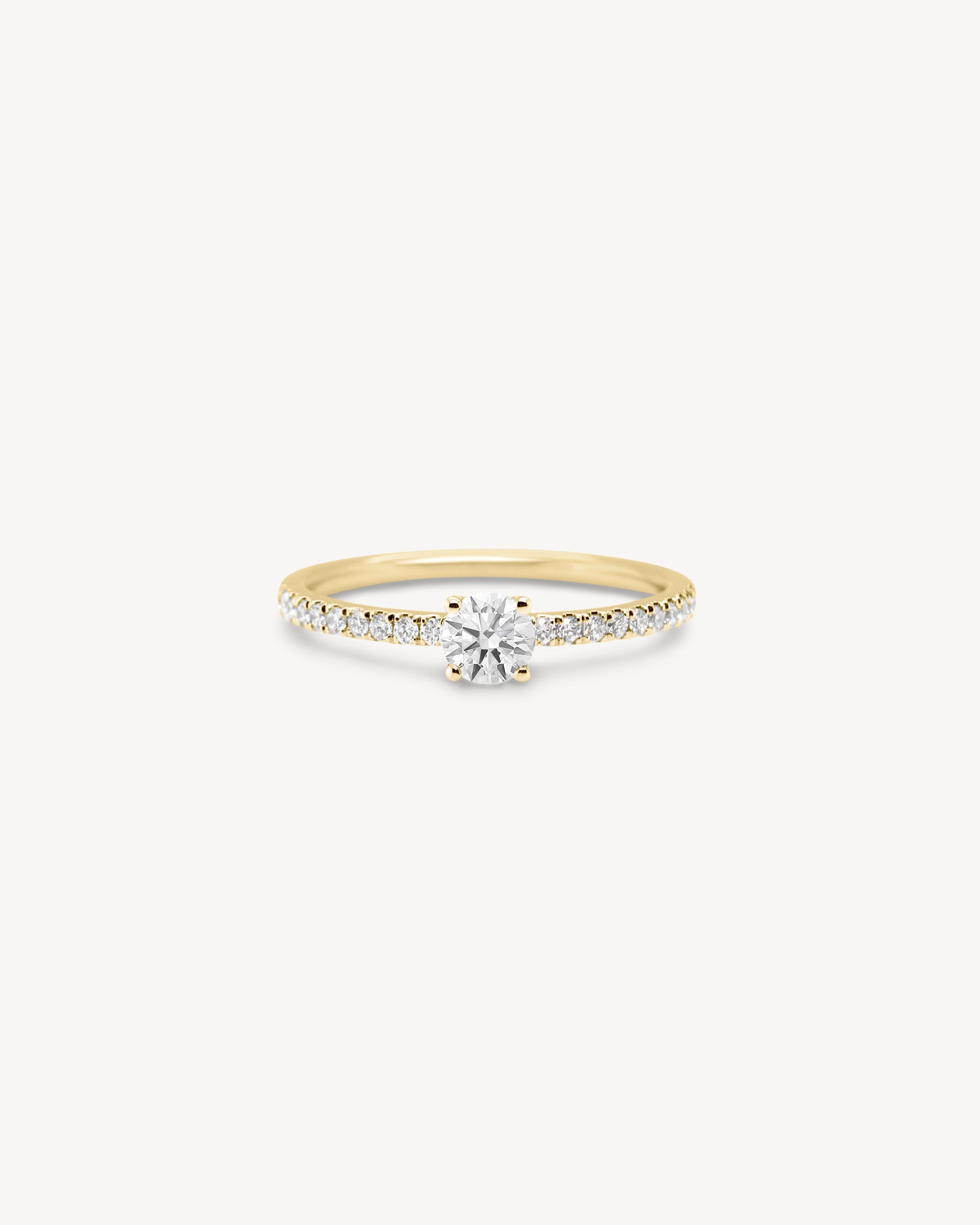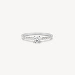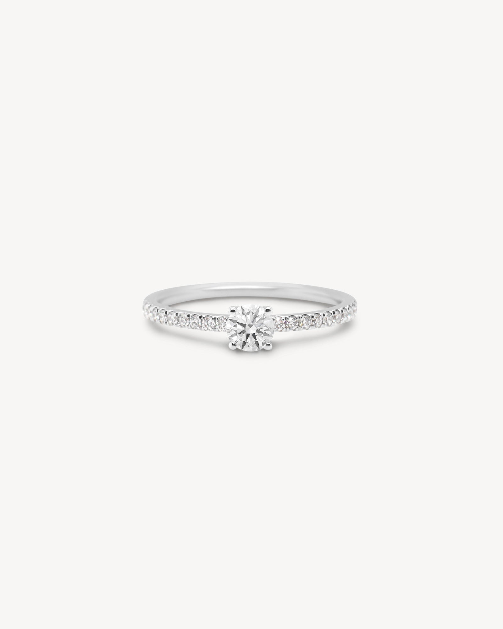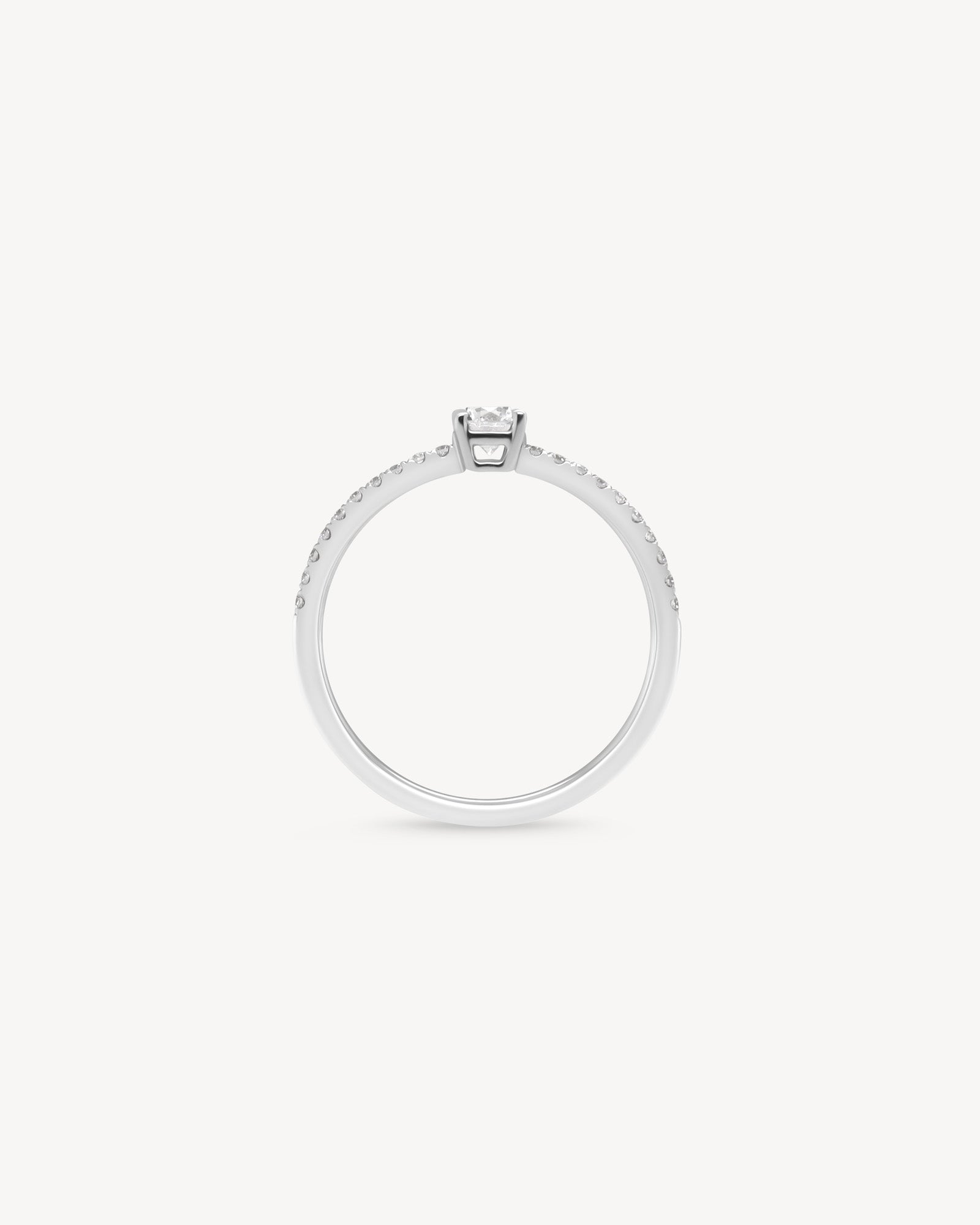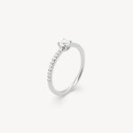 A slim pavé band accented with a Round cut diamond, this mini ring is designed to stack or wear solo for a subtle touch of sparkle. Petite and easy to wear, it’s an effortless addition to your everyday jewelry.