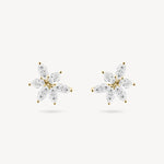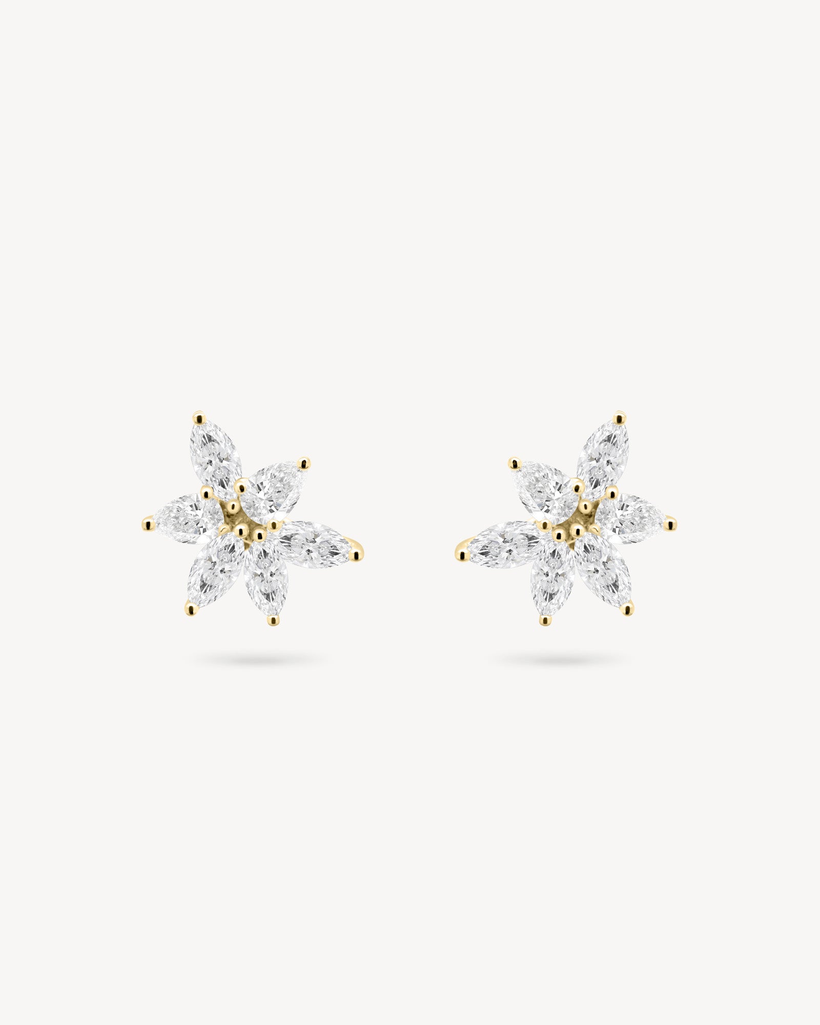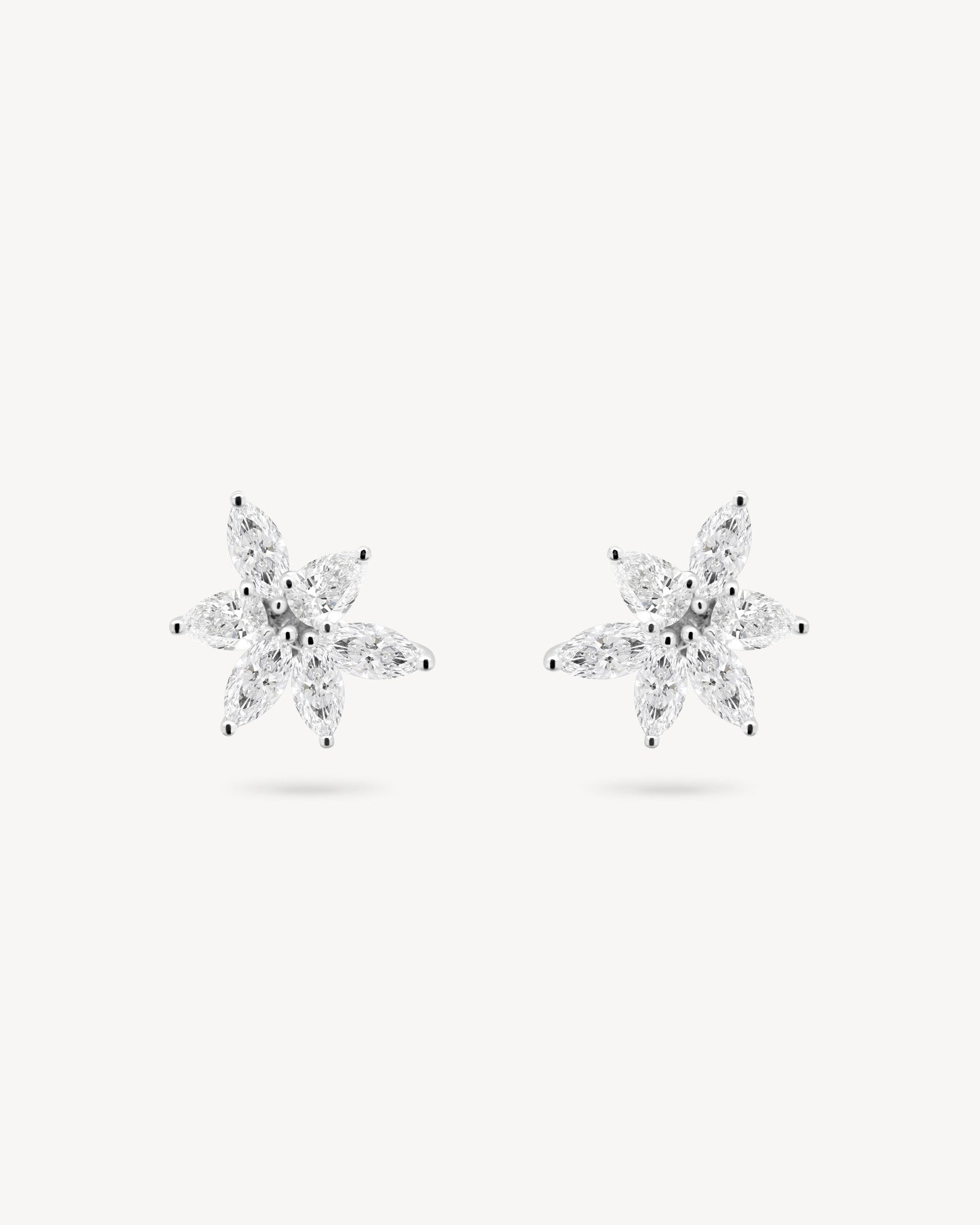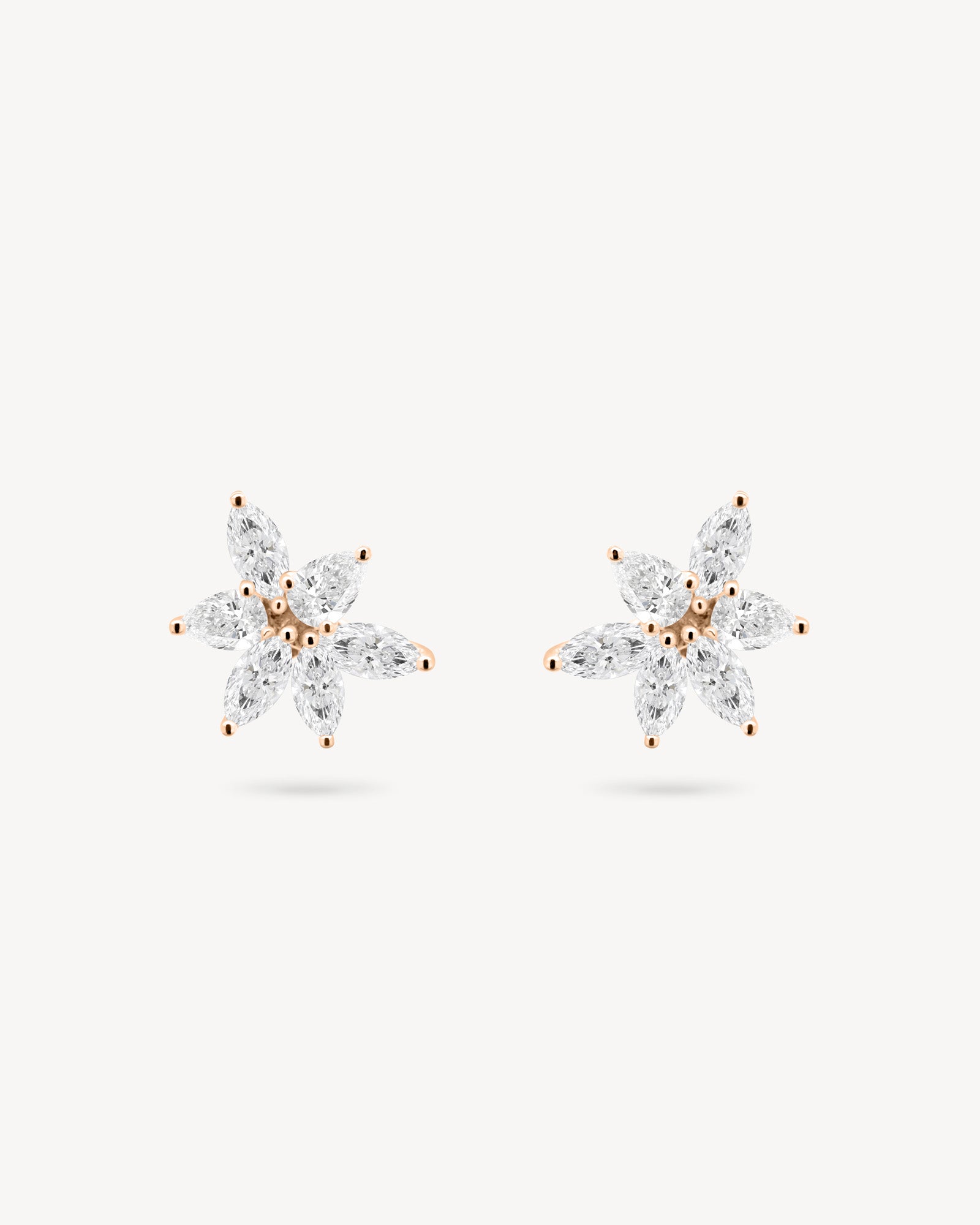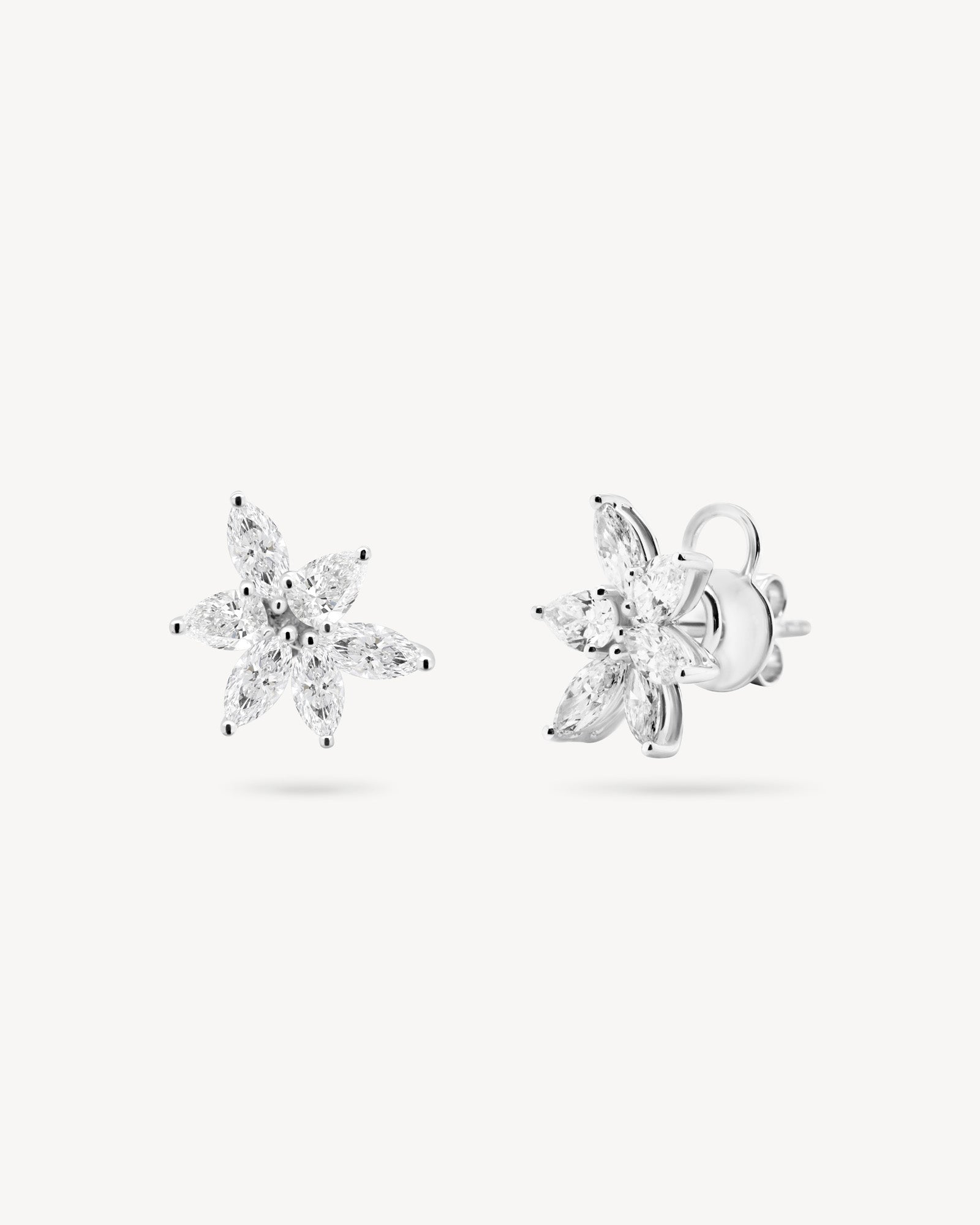 These cluster studs curve gently to follow the shape of your earlobe, sitting just right for a tailored, sculptural look. The mix of sharp diamond cuts creates a striking silhouette that is complex, eye-catching, and anything but ordinary.