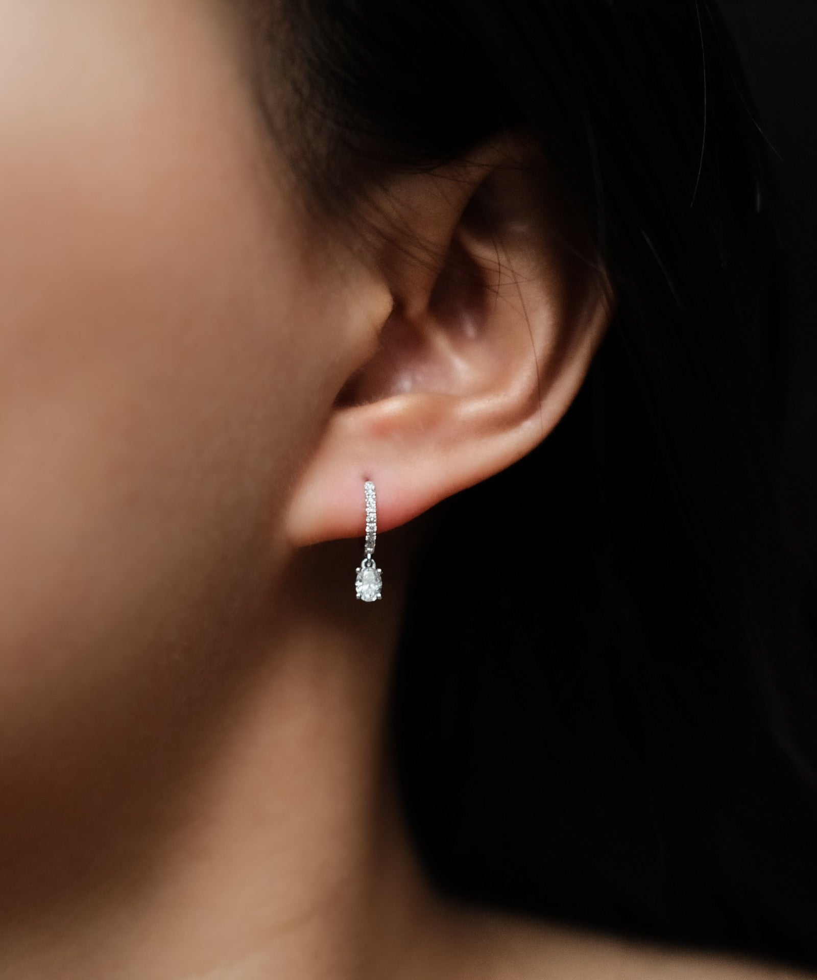 Mini Oval Cut Diamond Huggie Drop Earrings