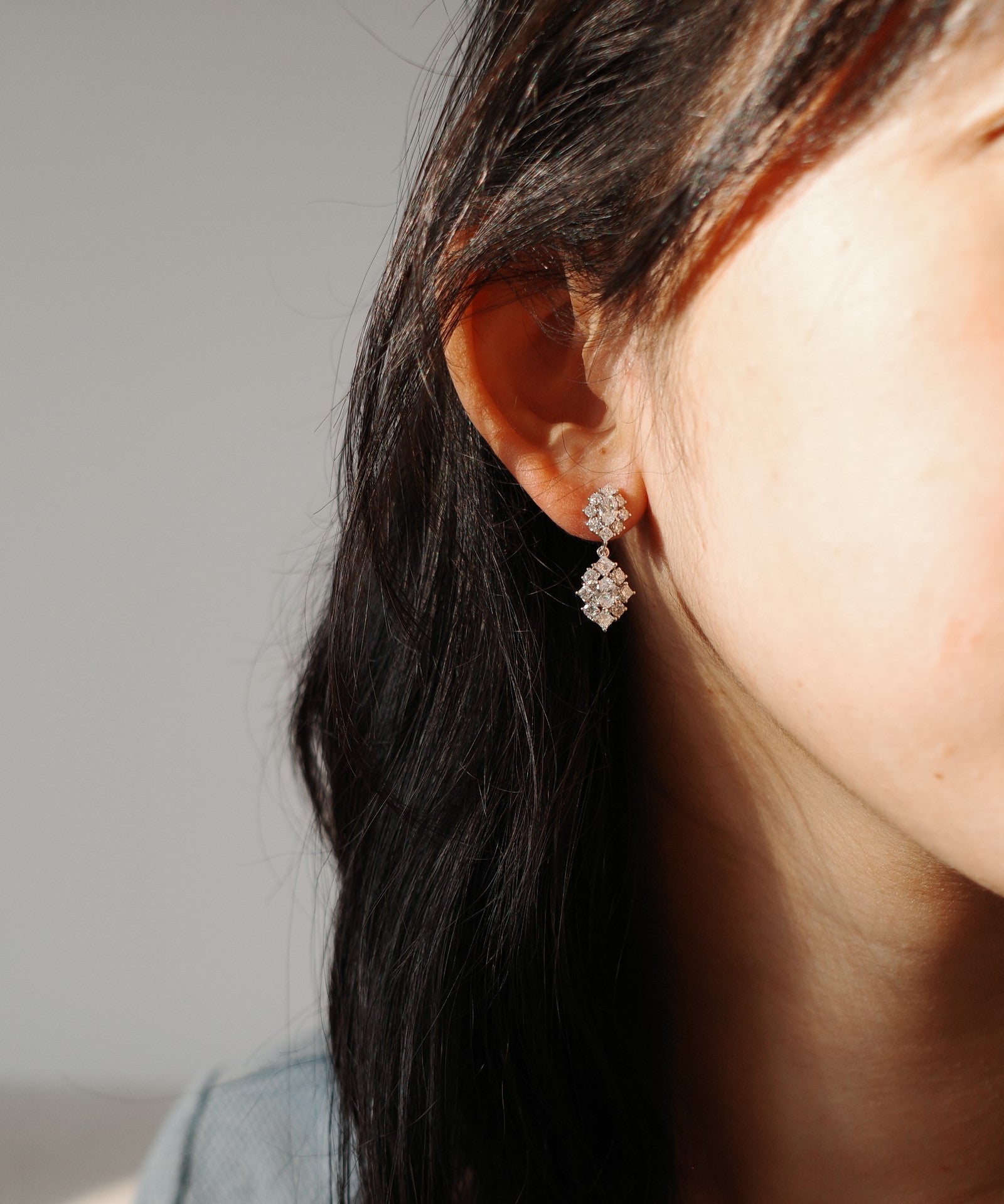 Mixed Diamond Cluster Drop Earrings