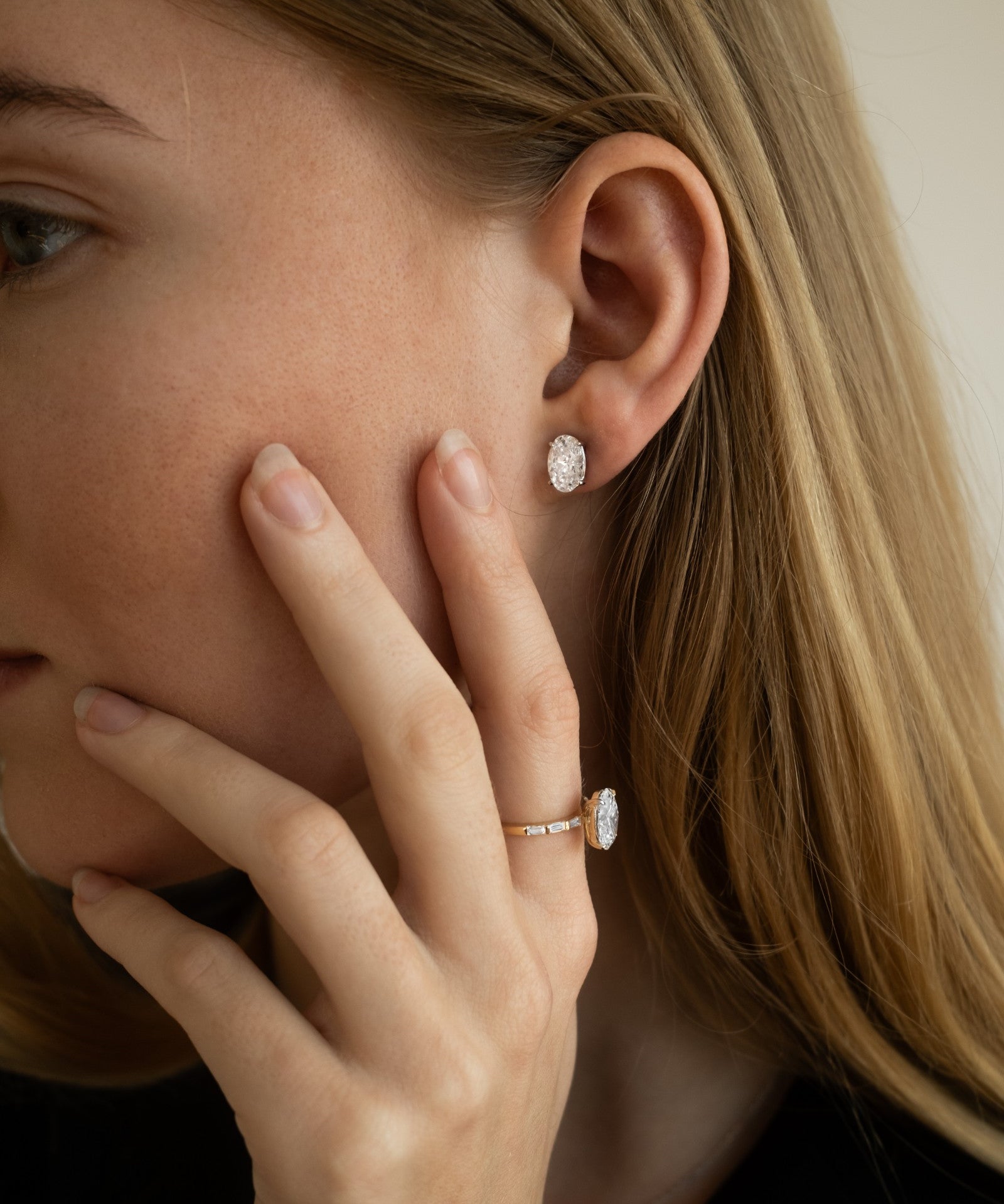 Oval Cut Diamond Solitaire Stud Earrings
