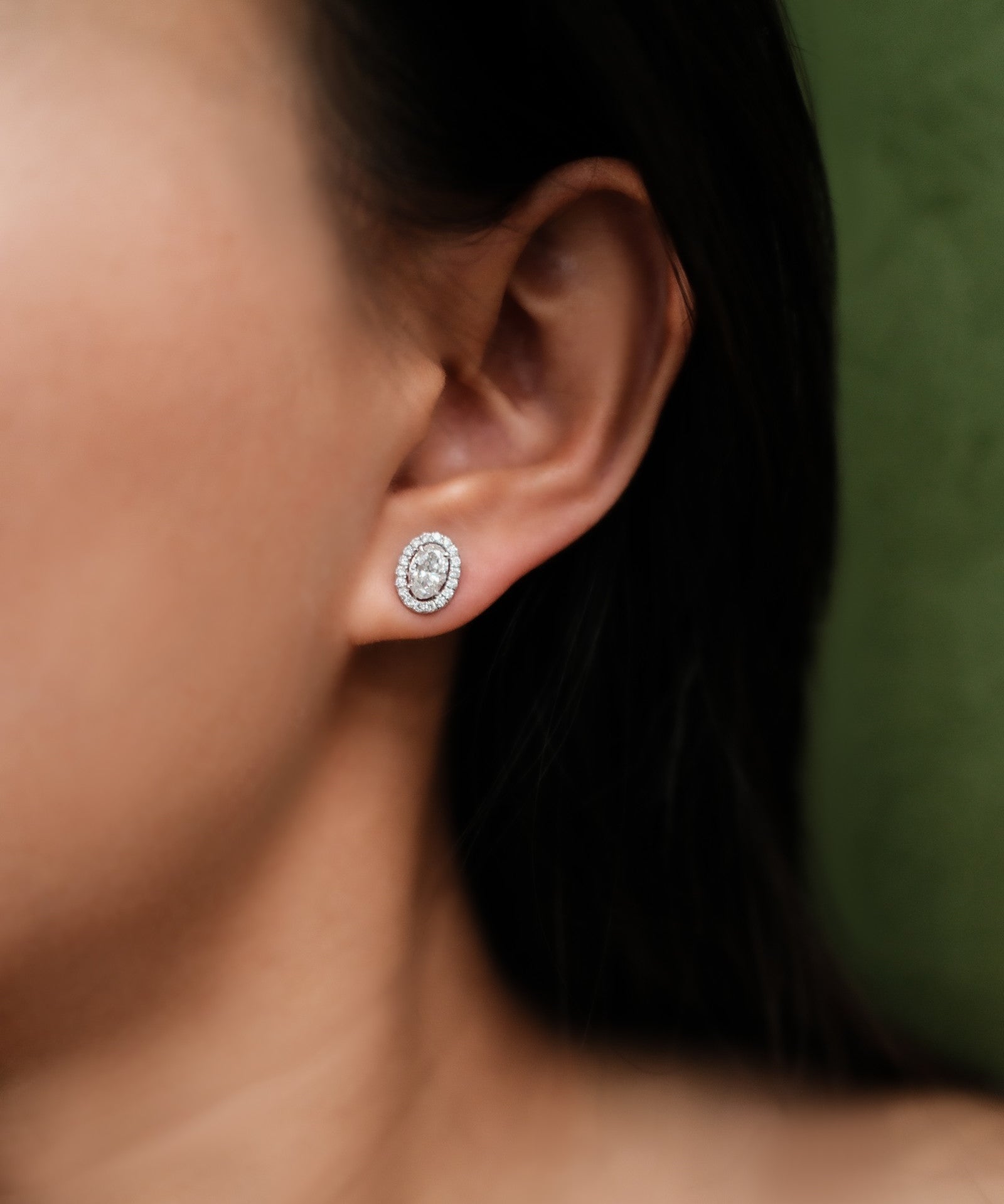Oval Cut Diamond Stud Earrings with Removable Halo